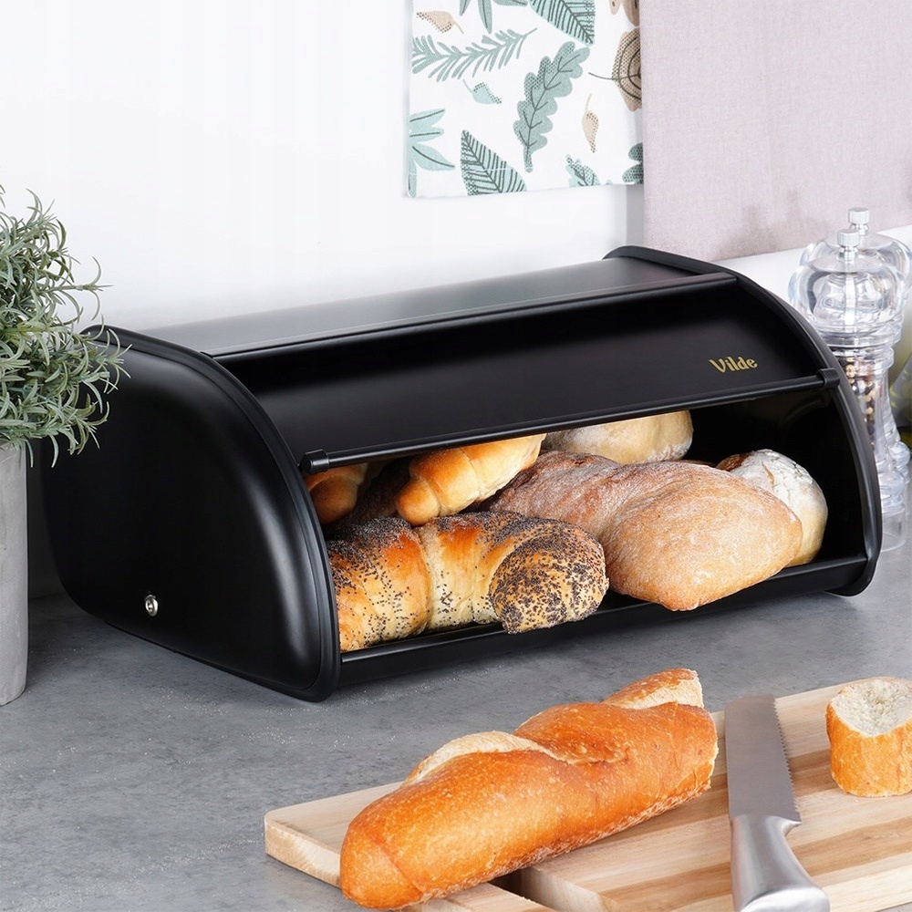 ✅ Виготовлено з нержавіючої сталі - Хлібниця виготовлена з чорної нержавіючої сталі з порошковим покриттям. Металева конструкція ефективно захищає хліб від подрібнення та пошкодження.