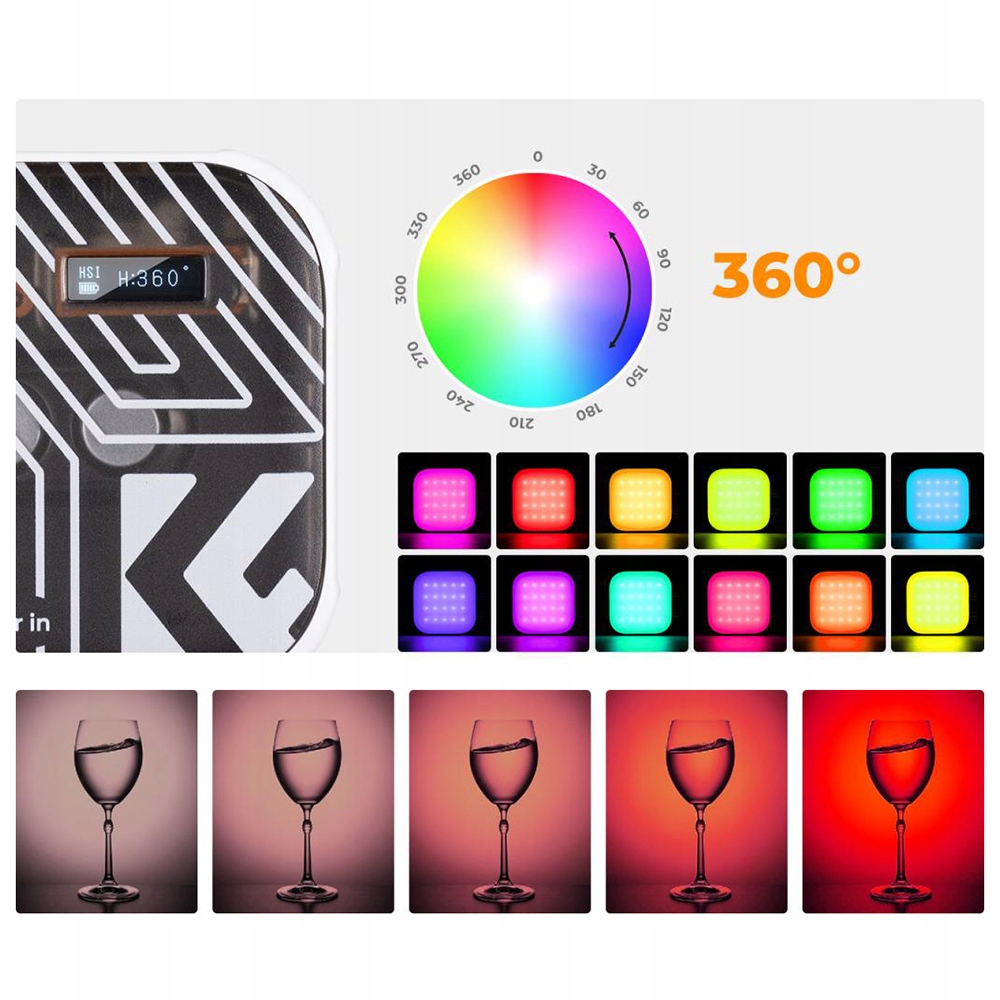 Компактна світлодіодна лампаK&F Concept KF34.036 V1 була створена для фотографів та інтернет-творців, які шукають мобільне джерело світла. Пристрій підтримує три режими роботи: природне освітлення CCT 2500-9900 K, кольорове освітлення RGB HSI і 21 тематична програма, що реагує на різні ефекти, такі як світло свічок, феєрверк, блискавка або стробоскоп. Вбудований розсіювач робить яскраве світло світлодіодів приємно розсіяним.