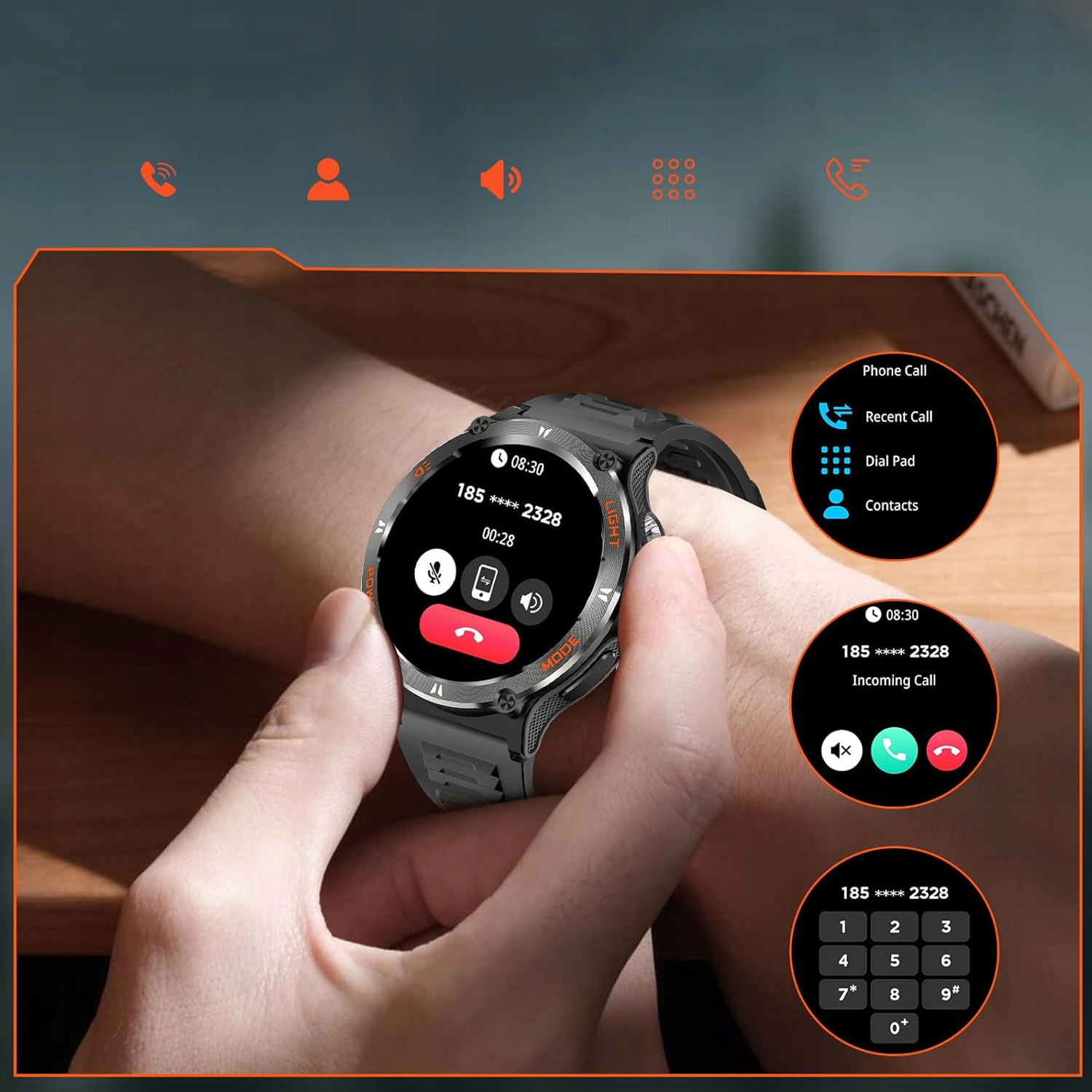 Чоловічий годинник охорони здоров'я підтримує дзвінки та сповіщення Bluetooth, щоб ви могли в будь -який час отримувати та здійснювати дзвінки та перевіряти повідомлення. Крім того, інтелектуальний голосовий помічник забезпечує зручну голосову взаємодію, що дозволяє легко керувати щоденними завданнями та відновити інформацію.