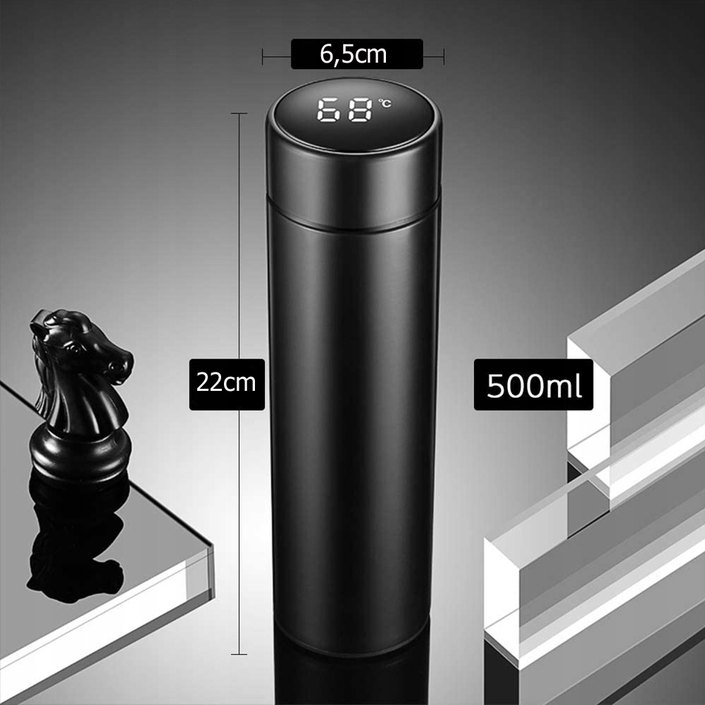 Ця стильна теплова кухоль потужністю 500 мл , з світлодіодом , що показує температуру, забезпечує тривалову ізоляцію, теплові та практичні рішення для людей, які цінують комфорт та функціональність.
