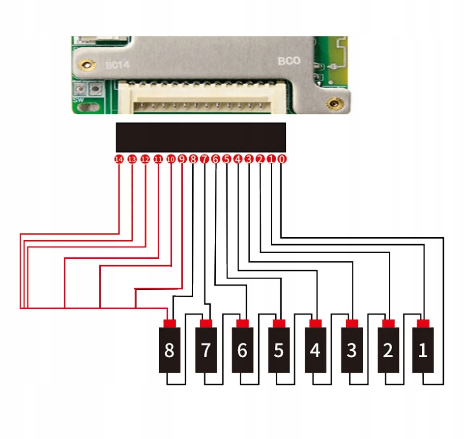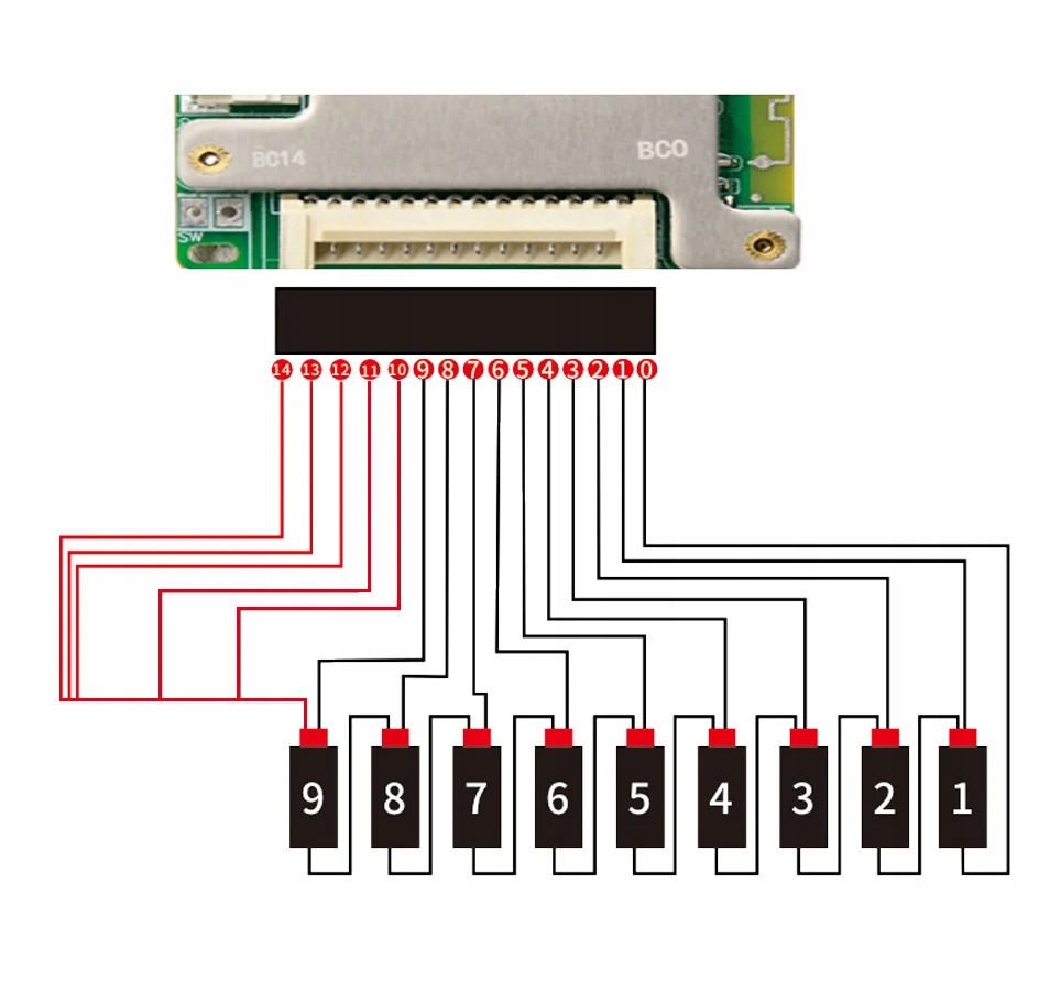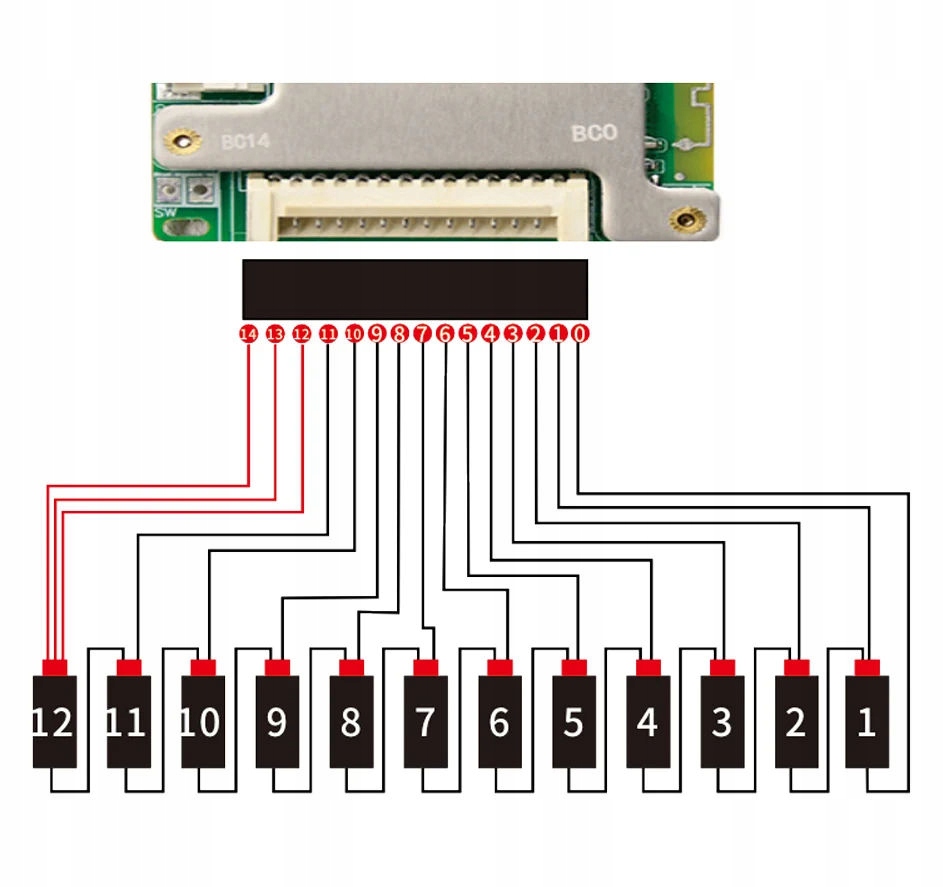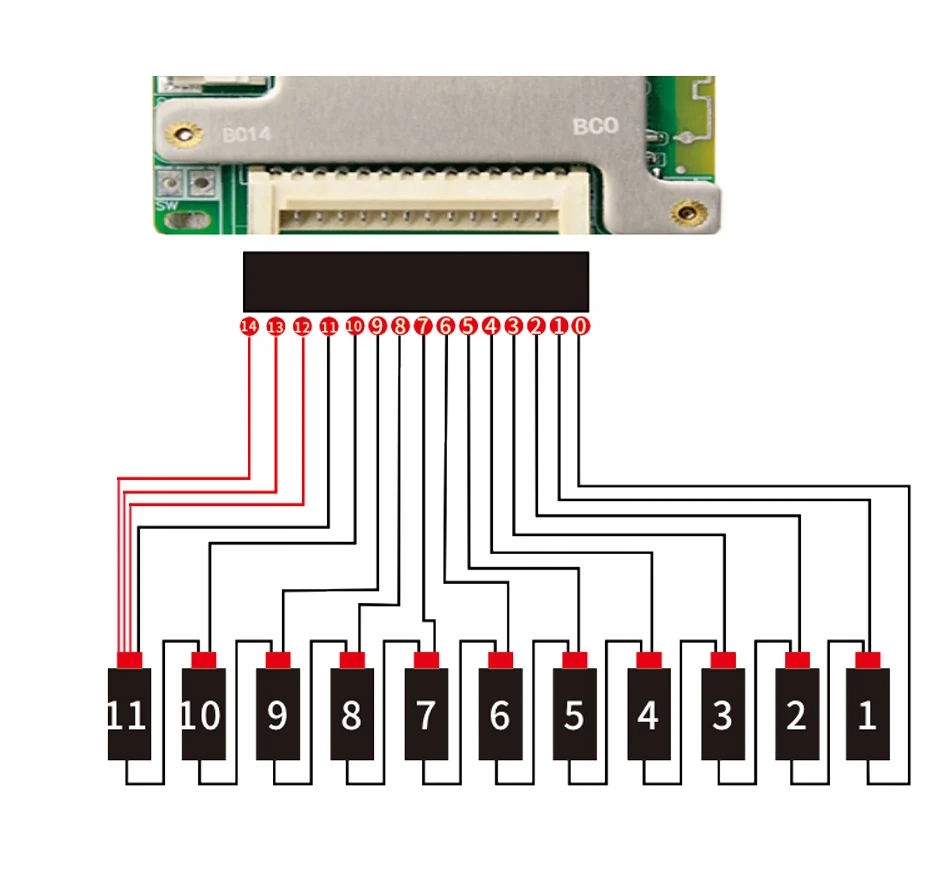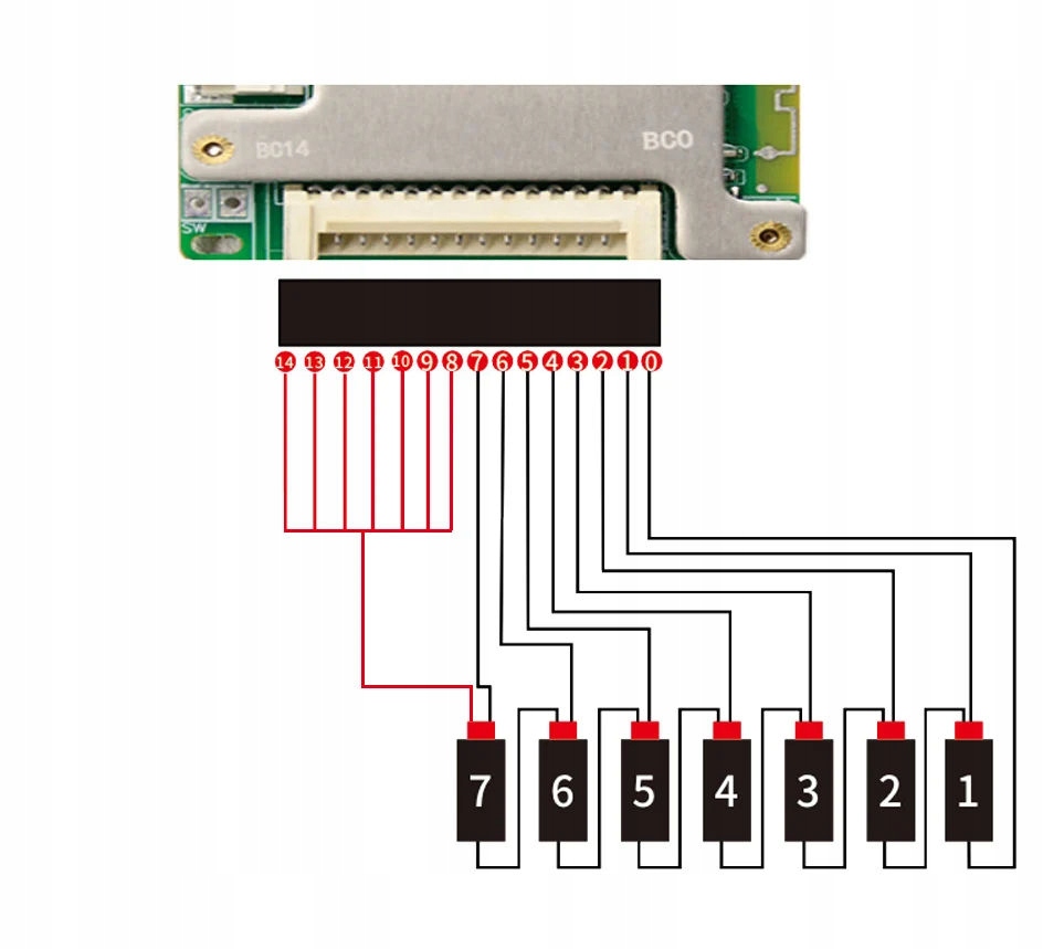Це модуль BMS від відомого китайського виробника Jiabaida.Модуль є універсальним - дозволяє підключати номінально літій-іонні корпуси 3.6/3.7V (наприклад, 18650/21700 осередків) в корпусах 7-14S (7S /8S /9S /10S/ 11S/ 12S /13S /14S ) Нижче наведені схеми підключення для окремих пакет.