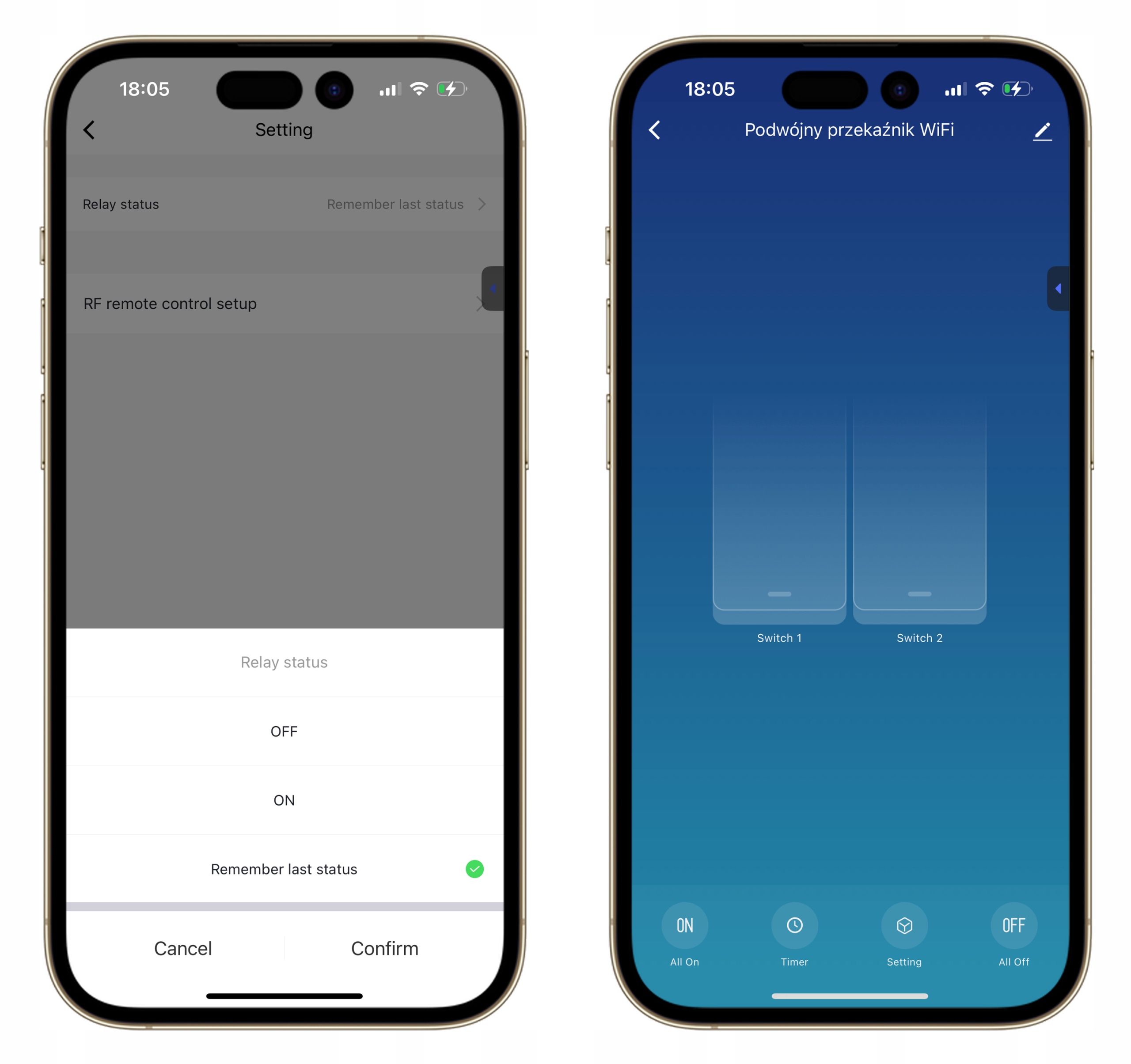 - Можливість встановити стан реле після збою напруги