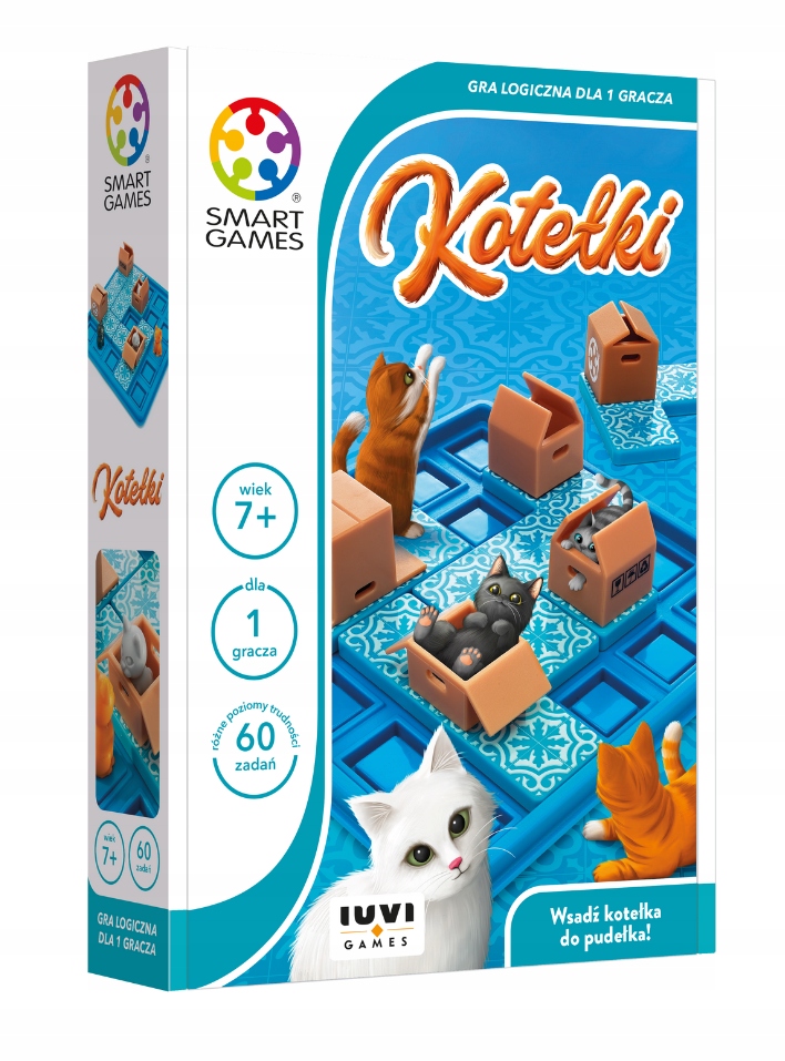 Kotełki — це польська версія захоплюючої гри-головоломки Cats&Boxes від Smart Games, яка передбачає розміщення всі коти в коробках. Гра складається з головоломки з елементами, які потрібно пересувати, щоб кожен кіт знайшов свою коробку.