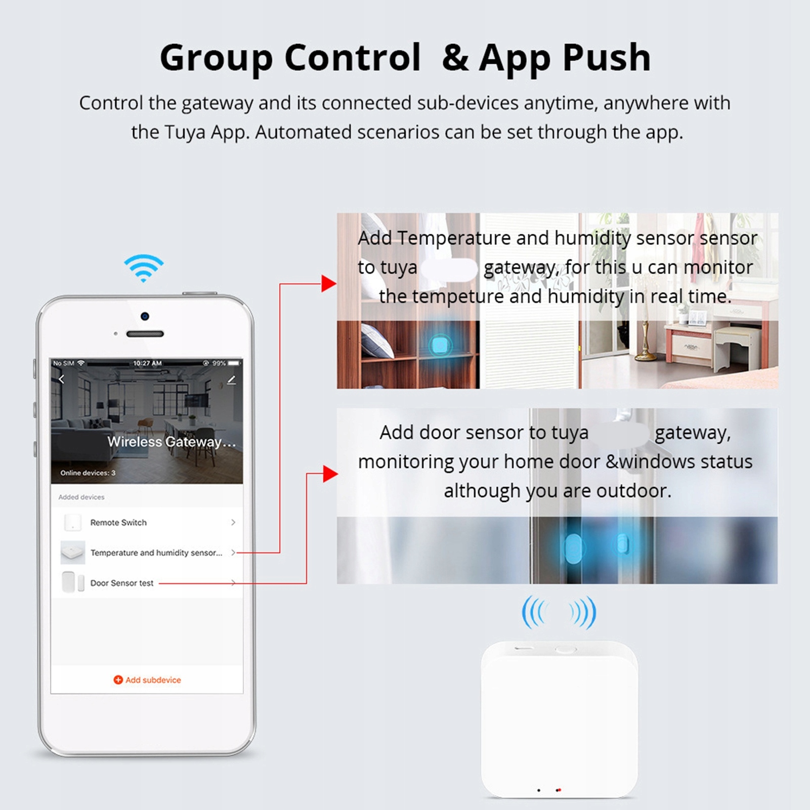 2. Групове управління \ u0026 Пуск: Керування воріт та підключення з'єднань, підключених у будь -який час і в будь -якому місці з додатком. Автоматизовані сценарії можна встановити за допомогою програми.