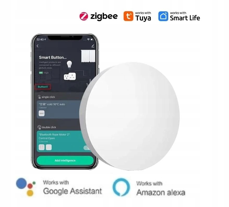 Сумісність із голосовим помічником: розумна кнопка TUYA ZIGBEE сумісний із голосовим помічником ALEXA та GOOGLE ASSISTANT, що дозволяє керувати пристроєм без використання рук