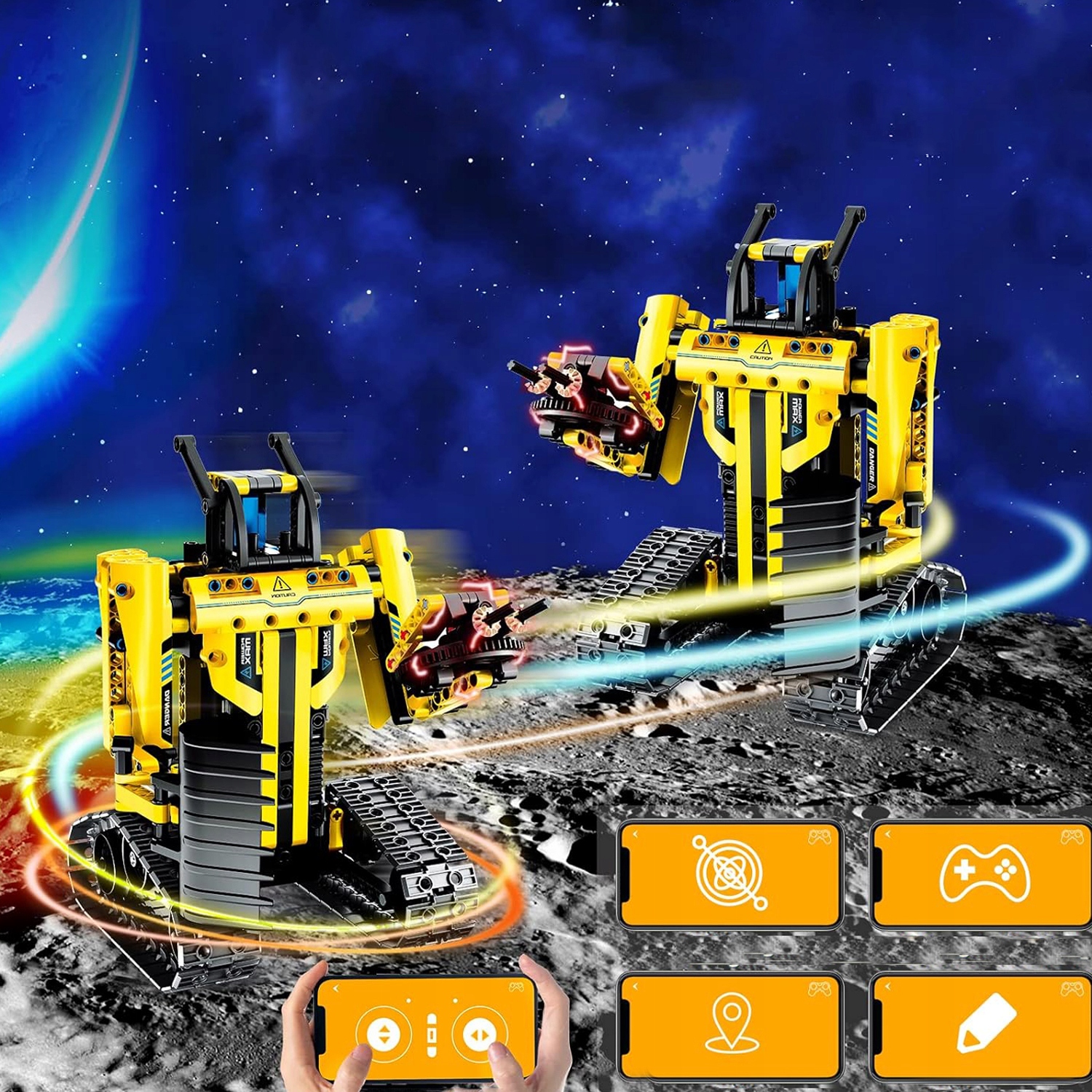 -3 в 1 Конструкція пропонує 3 різні способи веселощів, його можна скласти в 3 різних моделях (екскаватор, робот, будівельний автомобіль).