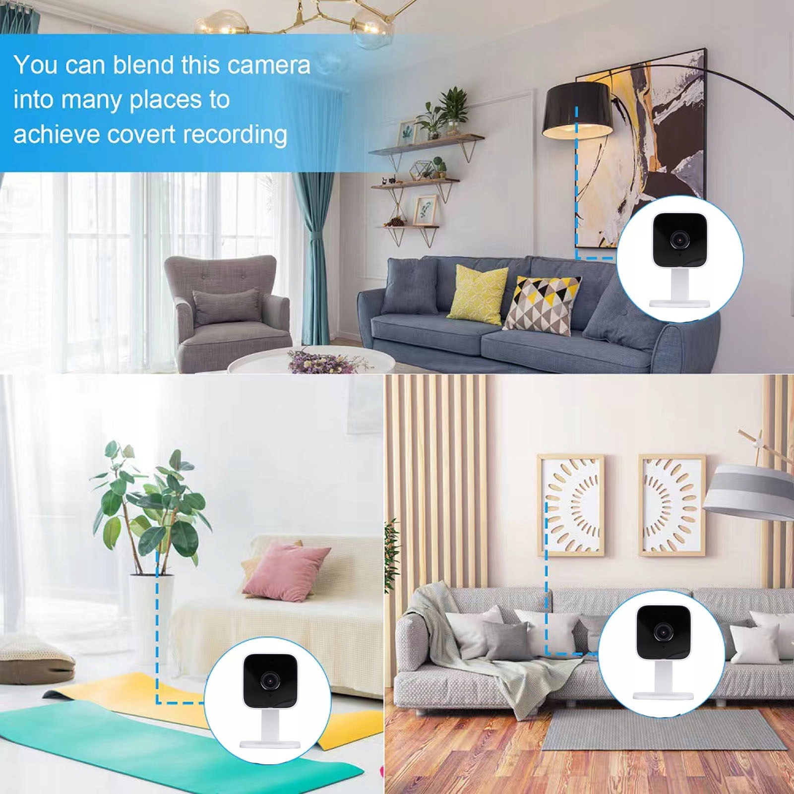 5. Стійке положення: розумна камера безпеки з основою для легкого розміщення на столі, столі чи будь-де, яку нелегко впасти.