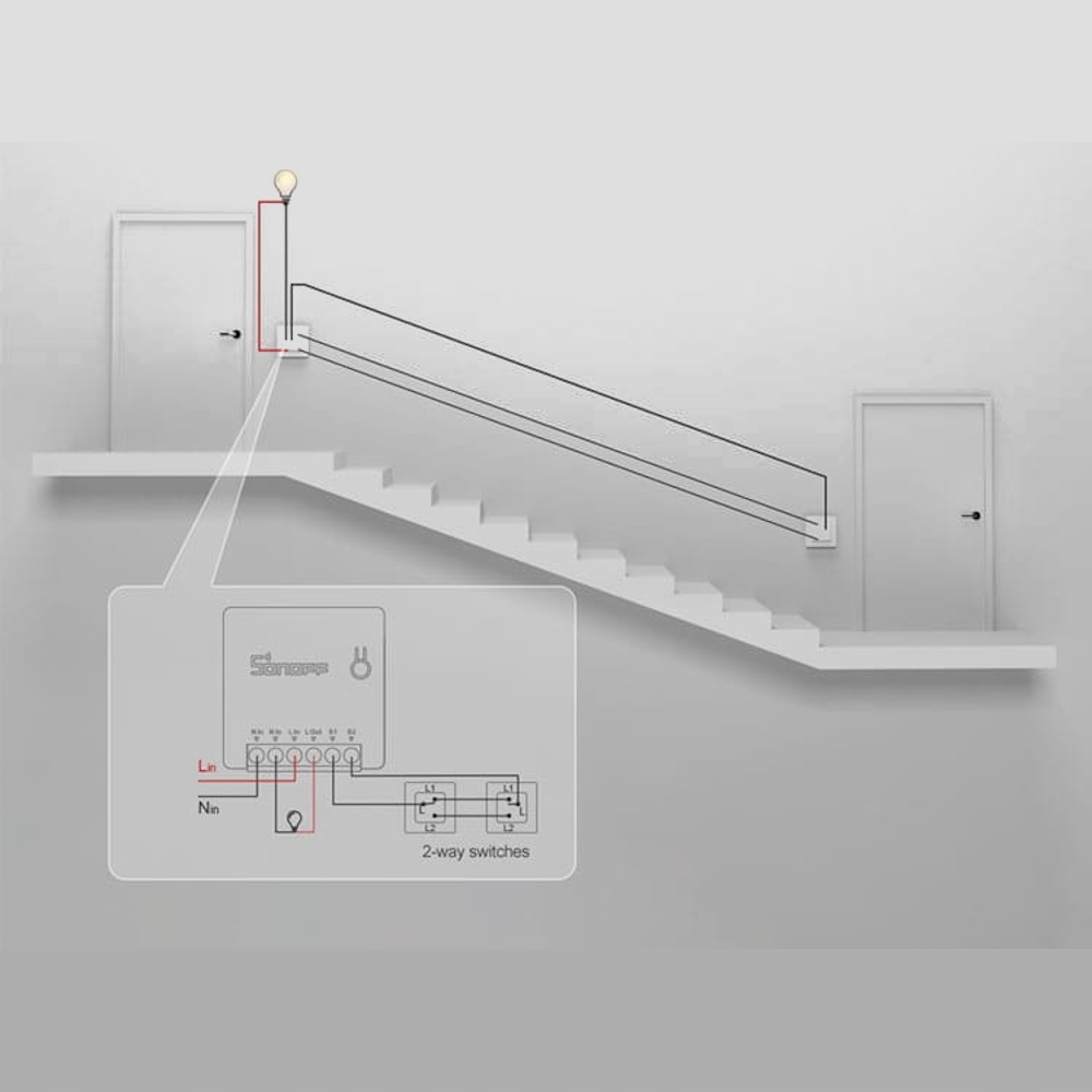 перемикач sonoff mini схвалений для роботи із зовнішнім комутатором. Окрім управління програмою, перемикач sonoff mini оснащений лінією, що використовується для підключення ручного комутатора. sonoff mini r2 можна встановити в банку комутатора комутатора, завдяки якому підключений пристрій можна керувати вручну, використовуючи доторкнення фізичного комутатора або з будь -якого місця, де Інтернет використовується за допомогою програми. Після підключення пари комутаторів робота отримується у двох режимах, тобто ви можете запустити і вимкнути світло на нижній частині та вгору сходів. Після поєднання з додатком eweLink та отриманням з'єднання з віртуальними помічниками, такими як Google Assistant або Amazon Alexa Ви можете запустити підключені пристрої до Sonoff Mini R2 , не піднімаючи руки, просто видайте голосову команду. 4 Використання інтерфейсу REST API дозволяє підключити sonoff mini r2 з існуючою системою домашньої автоматизації. Інтеграція з безкоштовним додатком ifttt.
