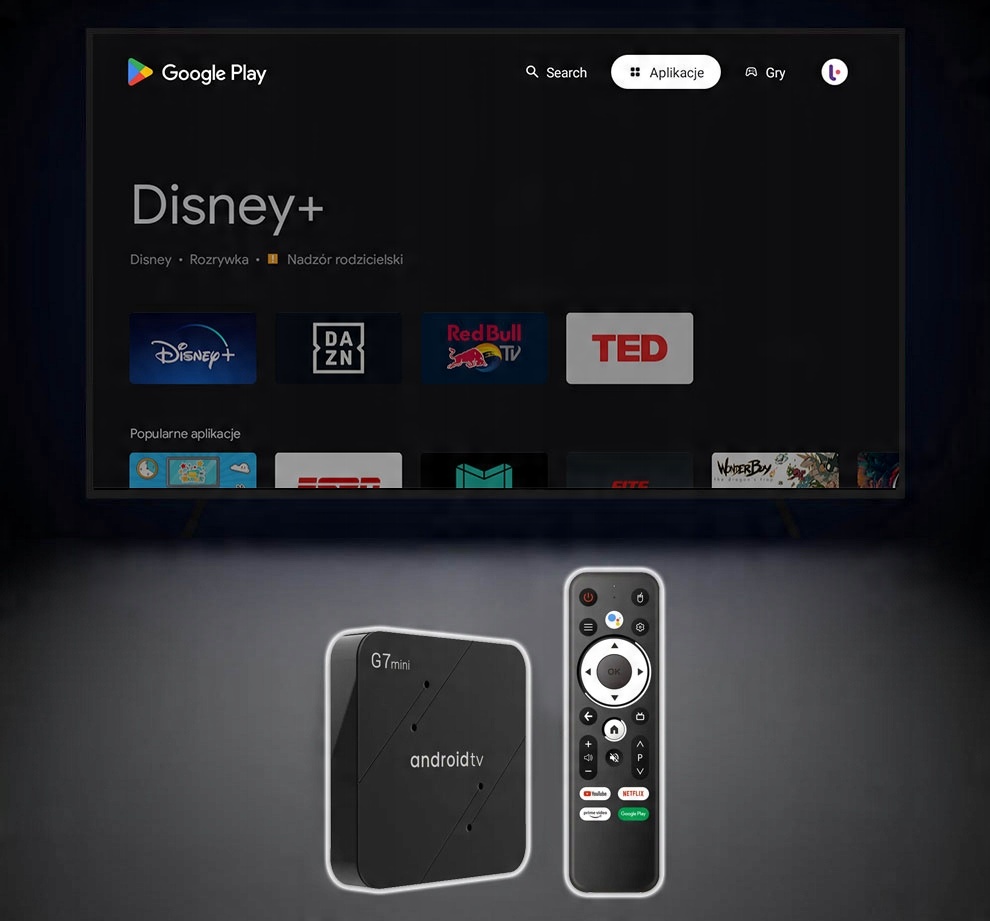 Box G7 mini — пристрій, який перетворить ваш телевізор на мобільний центр розваг! Завдяки йому ви можете легко бездротовим способом передавати зображення з мобільних пристроїв на екран телевізора. Відтворюйте відео, переглядайте фотографії та грайте в ігри на великому екрані! У порівнянні з новими телевізорами з системою SMART, тюнер оснащений мобільною системою з можливістю встановлення практично будь-яких програм з Google Play Store. Мільйони програм у магазині Google Play дозволяють будь-яку персоналізацію пристрою відповідно до вимог користувача.