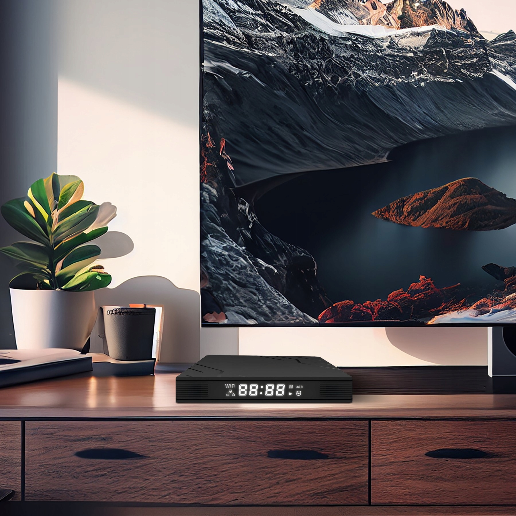 Пристрій оснащено чотирьохядерним процесором Rochchip RK3528 і відеокартою Penta-Core MALI-450 з частотою 750MHz >. Ця конфігурація не тільки гарантує плавну роботу програми, але й виняткову якість зображення, підтримуючи роздільну здатність 4K зі швидкістю 60 кадрів на секунду.