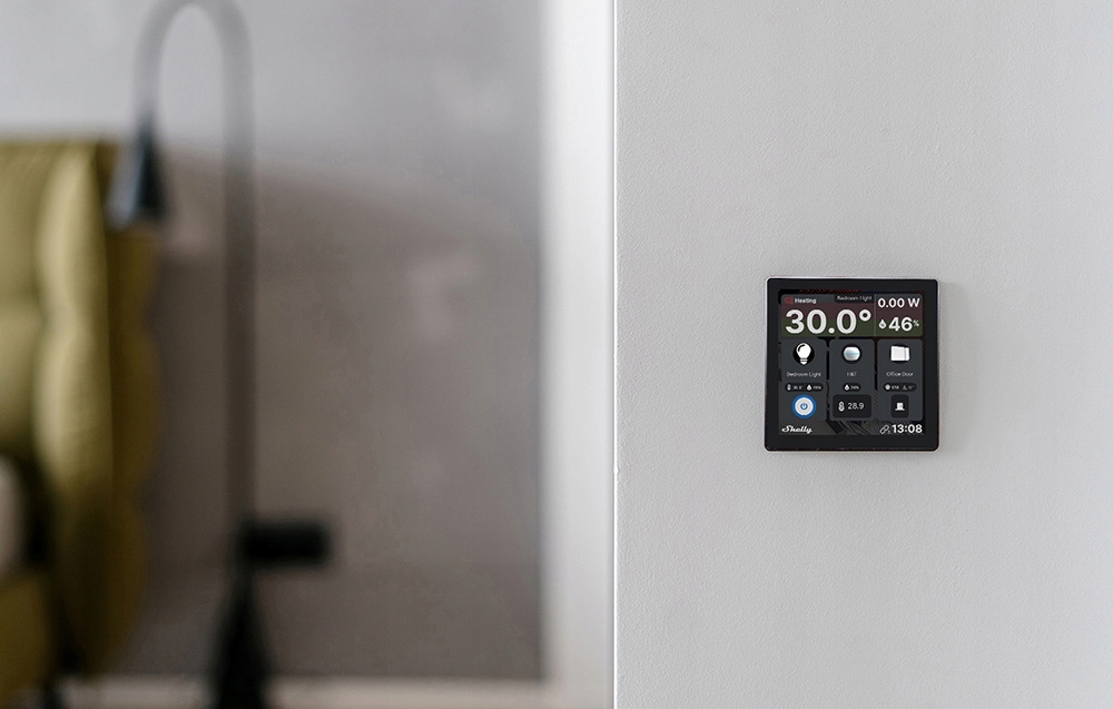 З Настінним дисплеєм Shelly та Shelly BLU H&T ви можете легко керувати кліматом, освітленням і пристроями — одним дотиком.