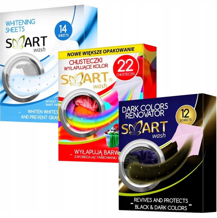 Як працюють серветки SMART? Барвники, які виділяються під вплив теплої води, ефективно притягуються та поглинаються нею. Використовуючи потрібну кількість серветок SMART, ви можете безпечно прати свій одяг при низькій температурі (30 °C), не сортуючи його попередньо.