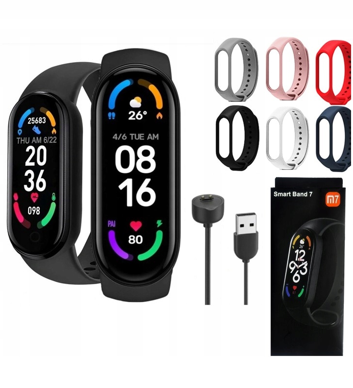 SMARTBAND M7 – це остання версія багатофункціонального годинника Smartband 2022 року. Пов'язка призначена як для жінок, так і для чоловіків. Пристрій буде особливо корисним людям, які ведуть активний спосіб життя. За допомогою однієї кнопки ви можете швидко перевірити багато цінної інформації, наприклад, виміряти пульс або артеріальний тиск.