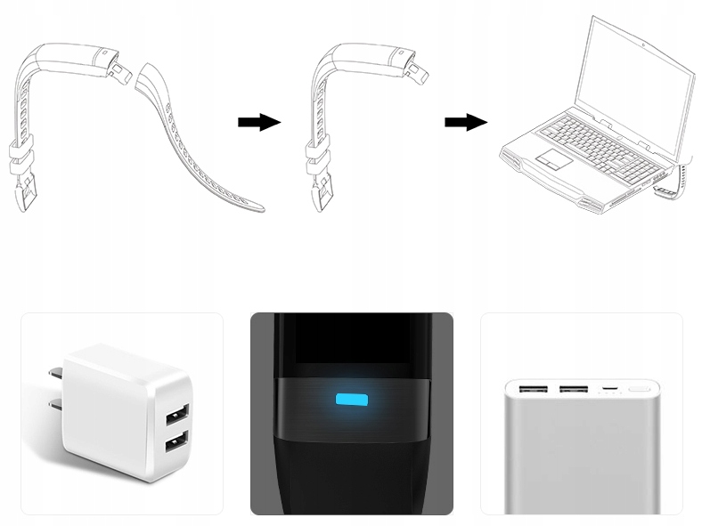 Заряджання через USB відбувається легко та швидко завдяки довговічній батареї.