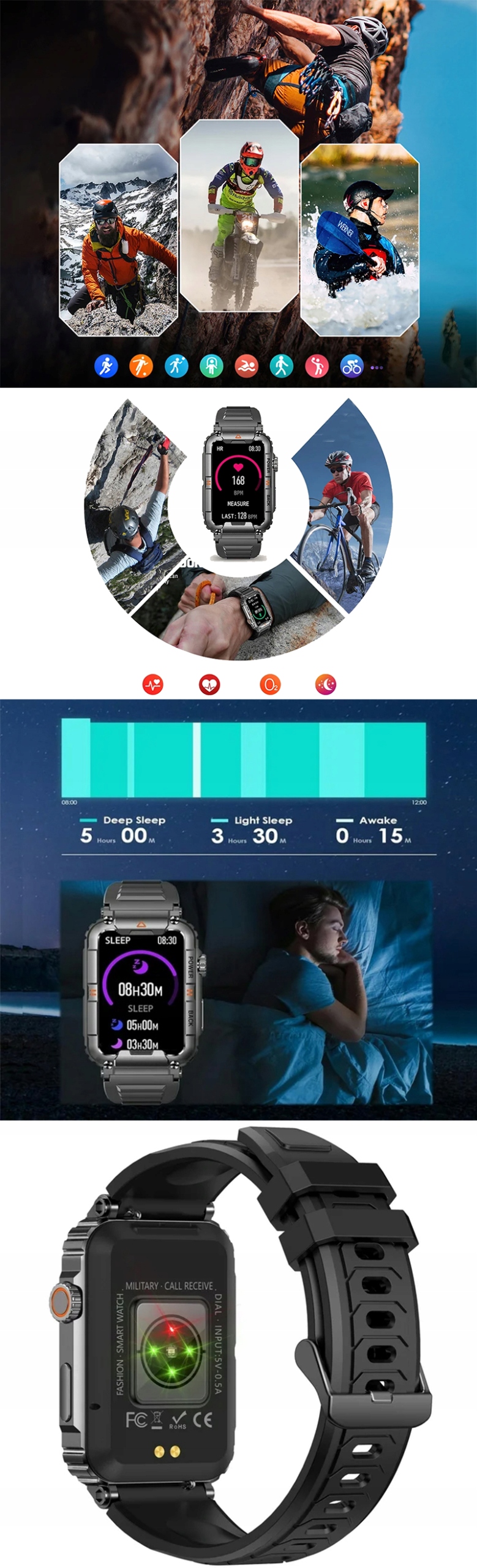 Розумний годинник відповідає нормам і стандартам, визнаним у всьому світі щодо стійкості до удари та водонепроникність. Його спортивний, міцний дизайн вирізняється традиційними кнопками та корпусом.
