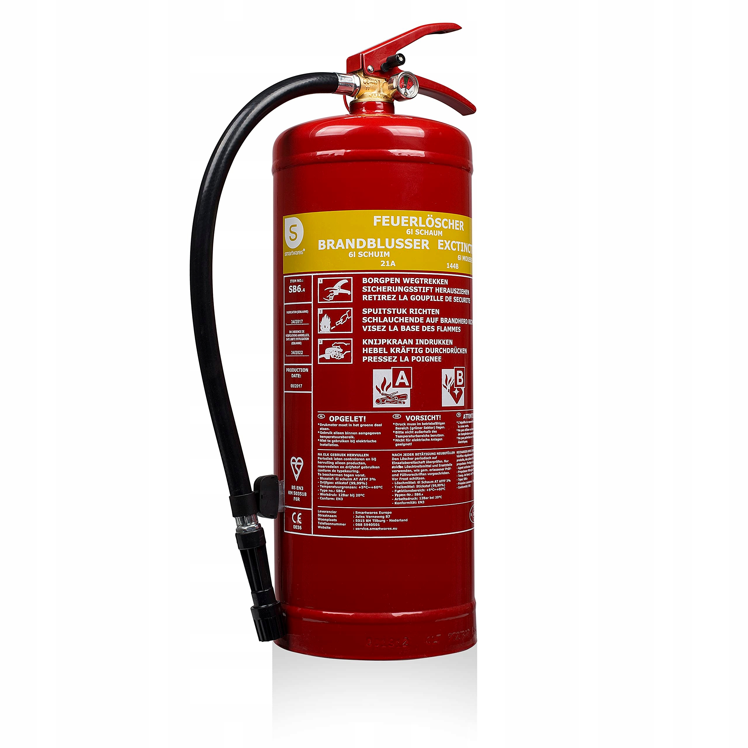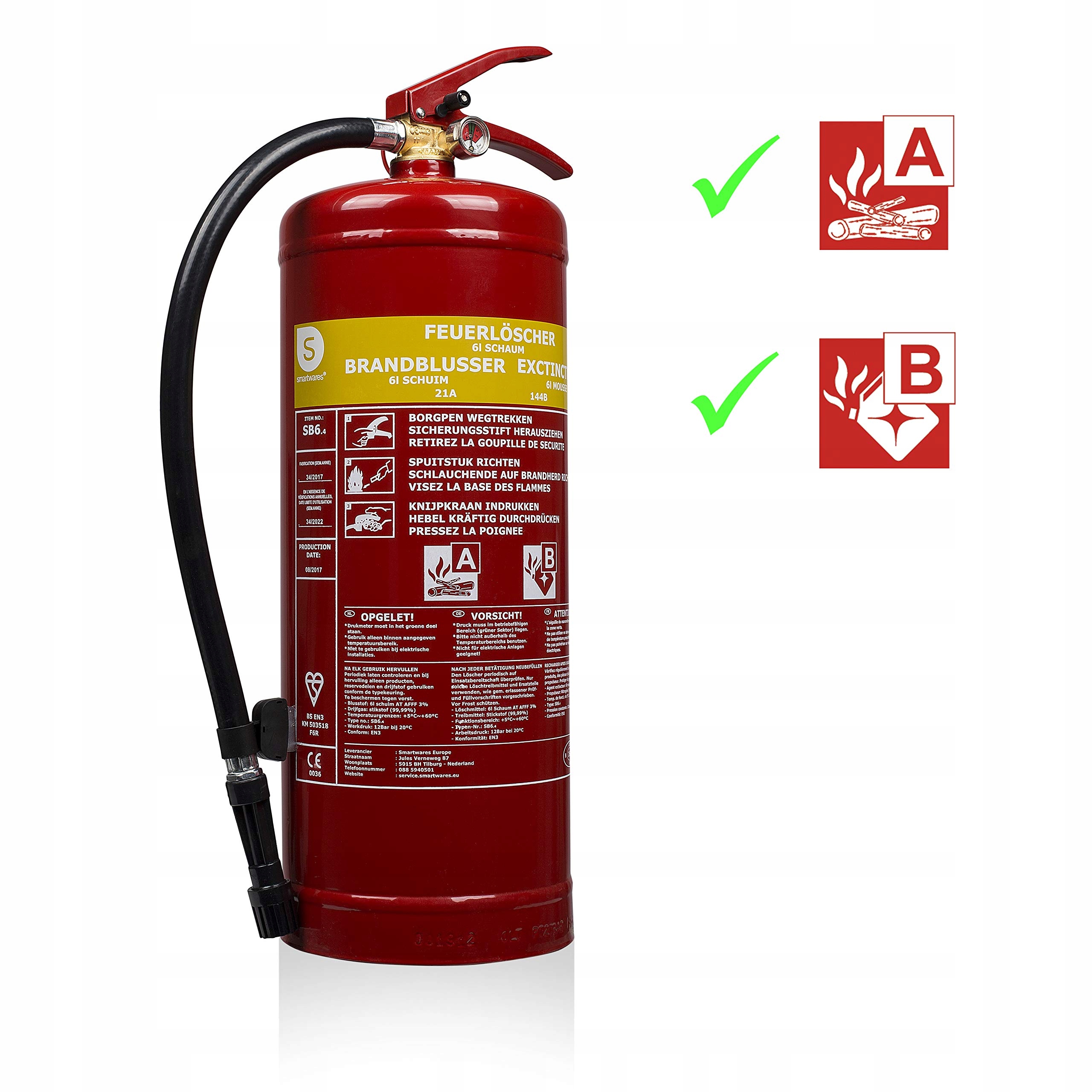 - Назва предмета : Smartwares SW SB6 6 ЛІТАЛ Піні вогнегасника, пожежний клас A, B, Дата запуску сторінки продукту