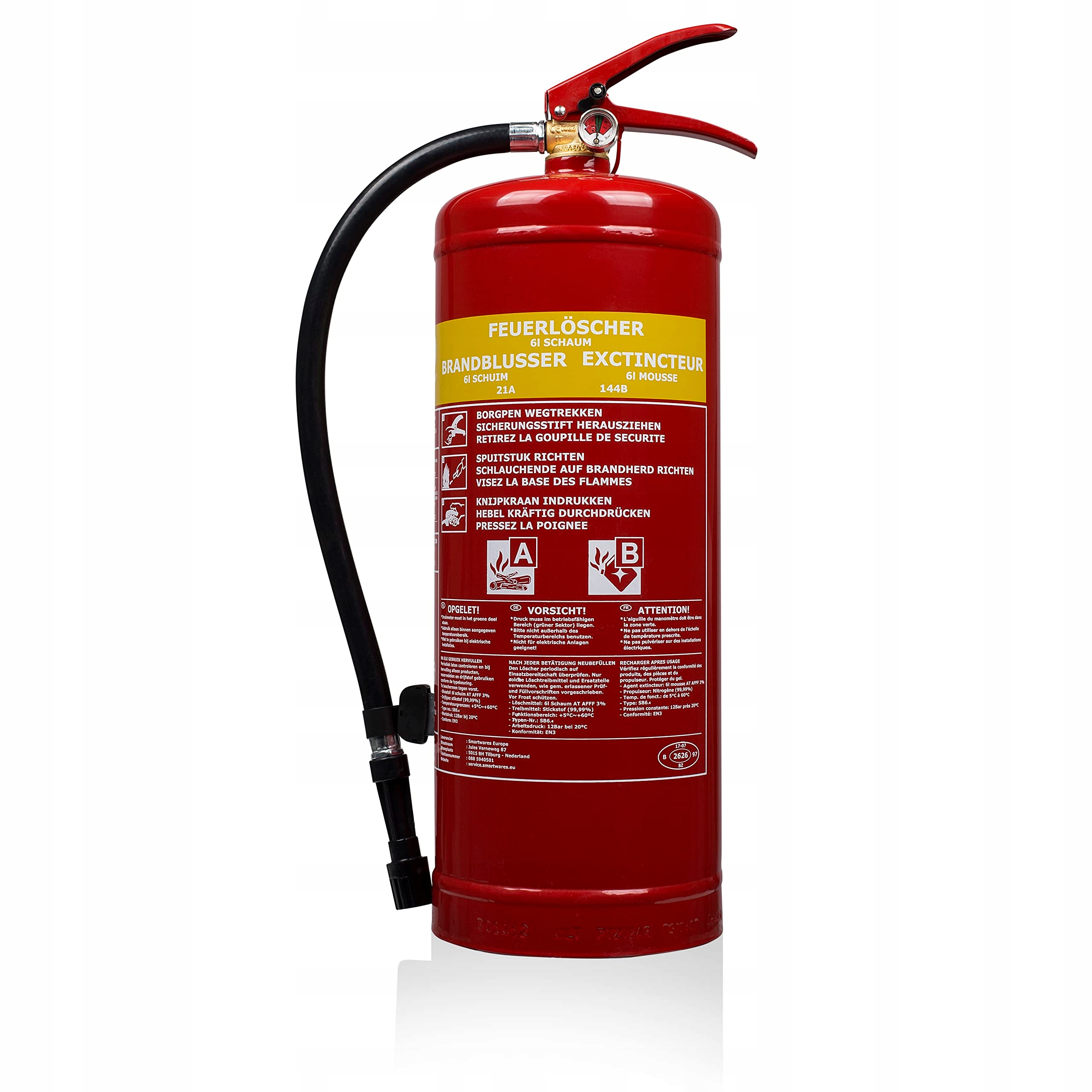 Smartwares SW SB6 Foam Fire Fistinguisher 6 літрів, пожежний клас A, B, вогнегасник