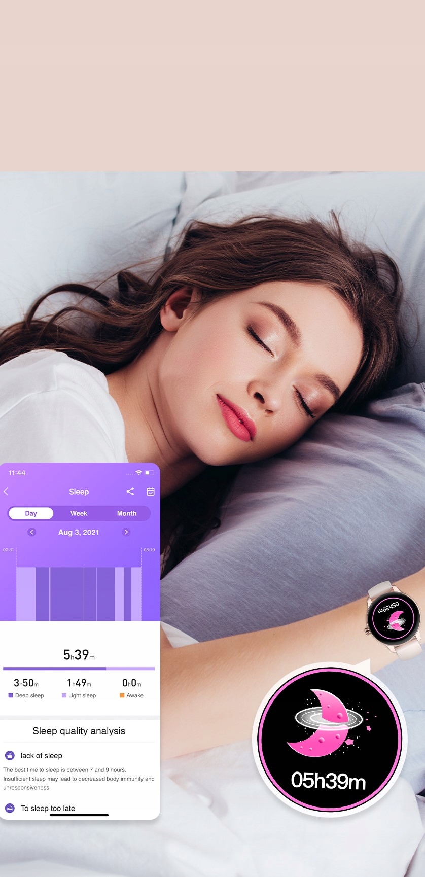 Відпочинок, розслаблення та сон — це 3 стовпи більш продуктивної роботи, кращого самопочуття, більше енергії та гарного вигляду. Монітор сну дозволяє оцінити тривалість фаз сну (глибока, поверхнева), його тривалість і неспання. Усі ці дані зберігаються в додатку, і, відстежуючи їх, ви можете покращити якість і глибину свого сну, що дозволить вам прокидатися вранці відпочилими та розслабленими. Це заняття, яке дозволить вам краще зрозуміти своє тіло, скорегувати свій щоденний розклад і потреби.