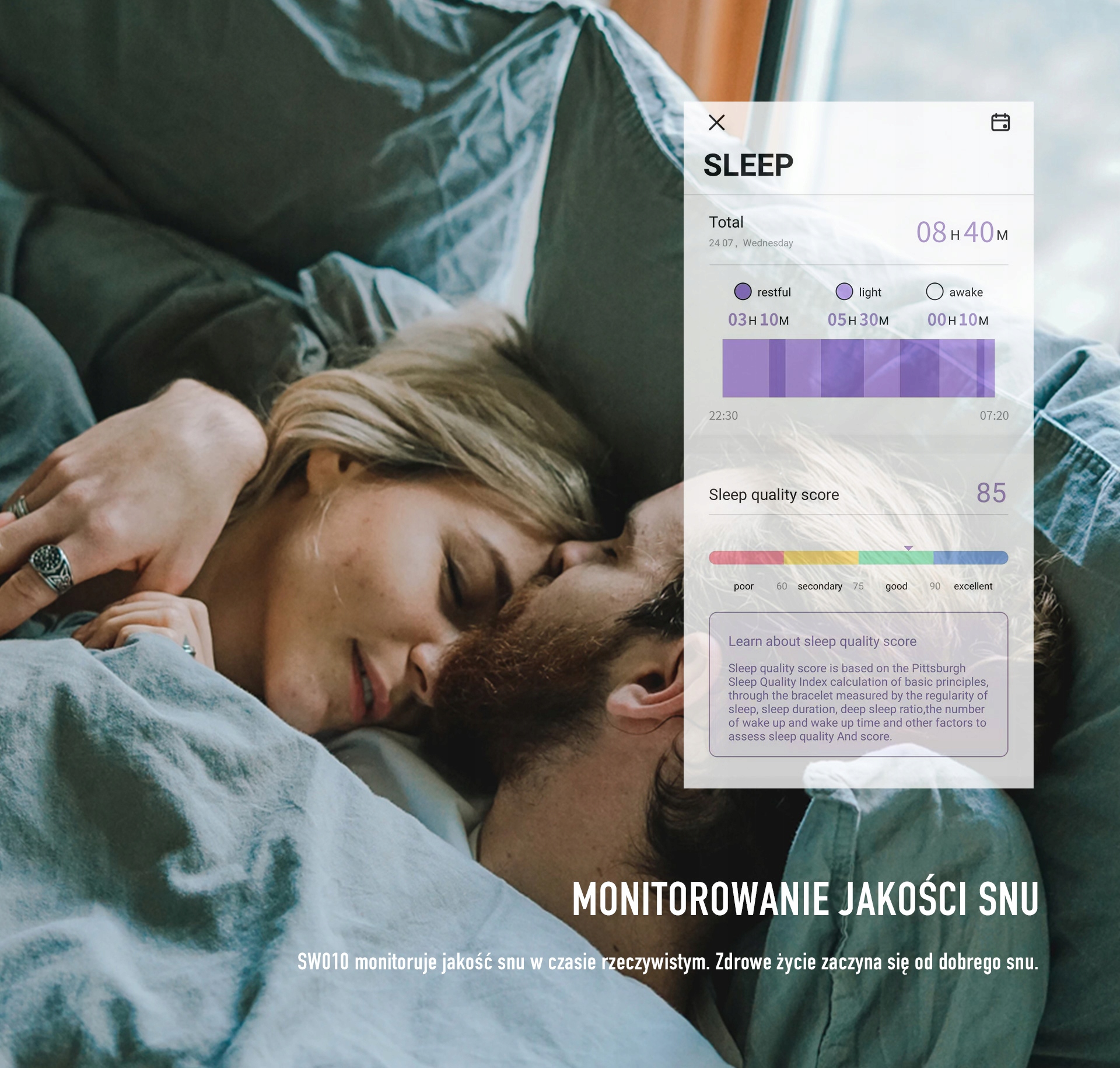 Ця функція дозволяє контролювати час і якість вашого сну. Після успішного підключення до програми ваші дані про сон автоматично синхронізуються в режимі реального часу. Це дає вам можливість проаналізувати, як ви спите та чи є ваш сон доброї якості.