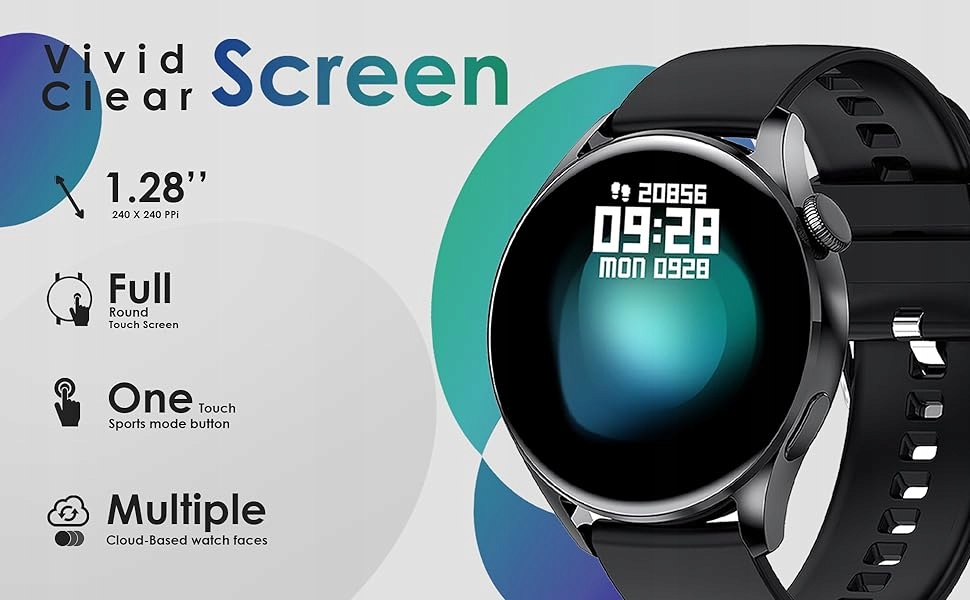 Багатофункціональний цифровий годинник з сенсорним екраном з діаметром 1,28 дюйма, простішими, більш складними, більш складними, витонченими в додатку Bluetooth Watch наявних щитів та ще 100 додаткових дисків у додатку. Ви також можете прикрасити диска годинник за власними фотографіями. Це може бути будь -яке фото, наприклад, ваша родина, тварина тощо