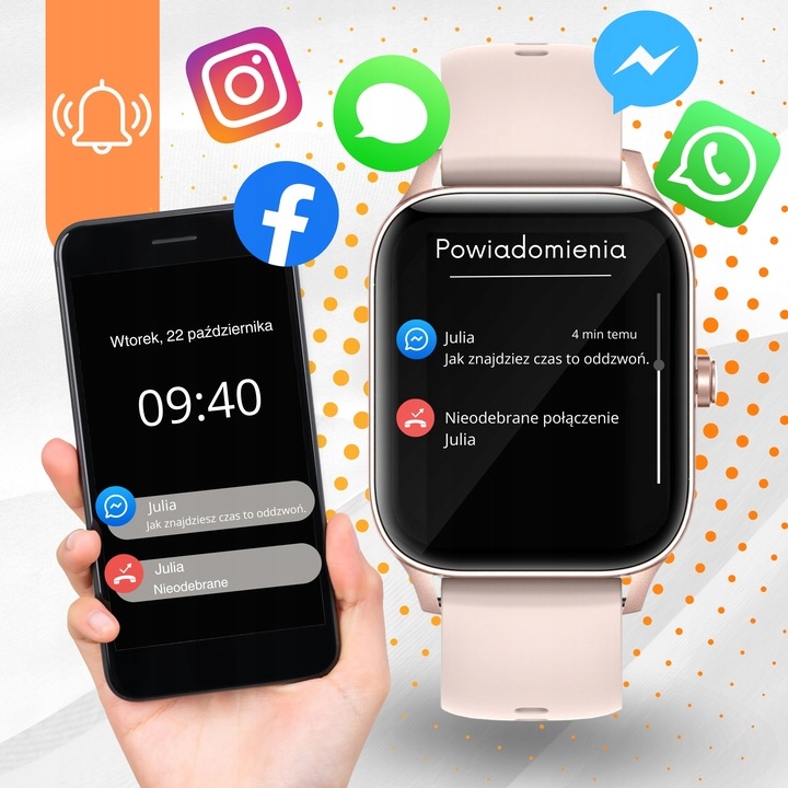 Розумний годинник дозволяє переглядати сповіщення зі смартфона в режимі реального часу, тож ви завжди будете в курсі подій. Все, що вам потрібно зробити, це підтримувати підключення телефону до годинника через Bluetooth. SMS-сповіщення та сповіщення з найпопулярніших програм, таких як Messenger, WhatsApp, Facebook тощо.