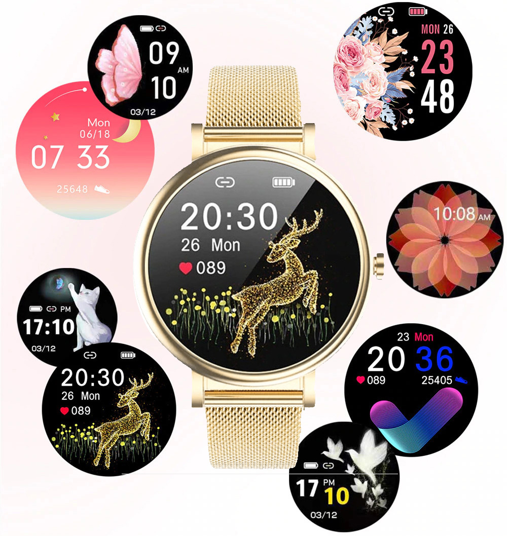 Чудовий жіночий розумний годинник від Rubicon є справжньою новинкою на польському ринку. Корпус і сітчастий браслет виготовлені з нержавіючої сталі. Годинники виглядають дуже елегантно і підійдуть не тільки під час різних видів фізичної активності, але й для повсякденного використання і навіть для особливих випадків. Незважаючи на ніжний жіночий вигляд, це повністю функціональний розумний годинник. Його функції включають крокомір, вимірювання пульсу, вимірювання кисню в крові (пульсоксиметр), вимірювання артеріального тиску, монітор сну, менструального циклу. Має 8 різних спортивних режимів (ходьба, біг, скелелазіння, їзда на велосипеді, плавання, баскетбол, еліптичні вправи, йога), а дані про тренування зберігаються на телефоні. Крім того, після підключення до програми на телефоні (OnWear) годинник отримує доступ до таких функцій, як: сповіщення про вхідні дзвінки та повідомлення, включно з програмою (макс. до 15 повідомлень) , інформація про погоду, нагадування про питну воду, планшети та фізичні вправи, керування музикою, фотографування на відстані, пошук телефону. Годинник також має можливість змінювати основну тему, тож ми можемо вільно змінювати його зовнішній вигляд.