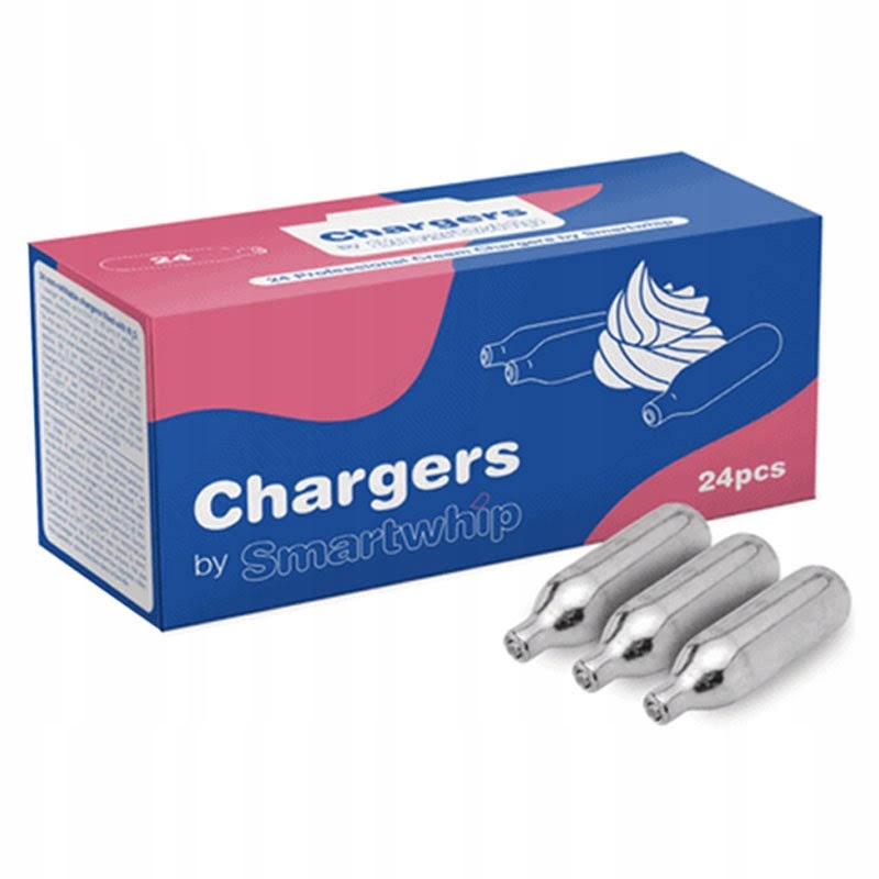 набір з 24 штук картриджі SmartWhip 8G з оксидом азоту (N2O). Кожен картридж містить 8,2 г чистого газу E942 - легкі, пухнасті результати без жирного післясмаку, ідеально підходять для десертів та напоїв.