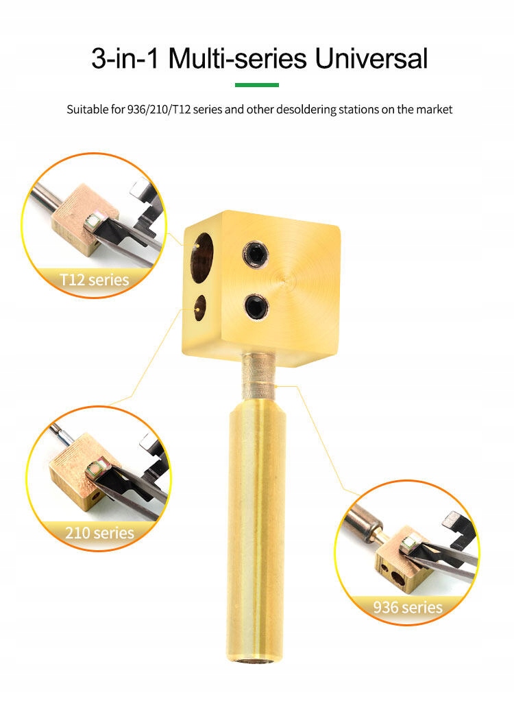 Після розміщення одного із вищезгаданих наконечників у тримачі станція з міді служить мікронагрівач під час розпаювання невеликих електронних схем.
