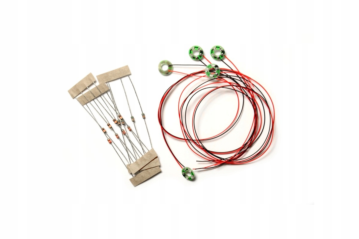 Монтуємо плати з LED діодами своїми руками. Наша пропозиція включає спеціальні плати з дуже тонкими діодами SMD. У комплект входять резистори для кожної плати і 20 см кабелю для кожної плати. Крім того, ми додаємо резистори з трьома різними значеннями, щоб можна було встановити найкращу яскравість підсвічування.