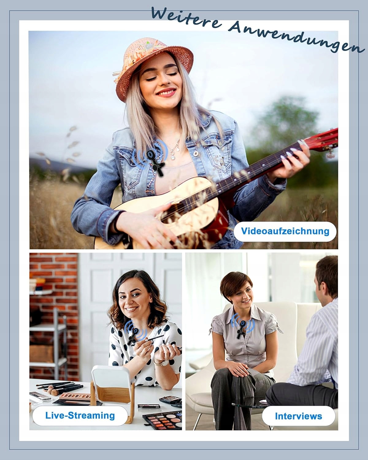 4 Він широко використовується в прямому ефірі та виробництві відео для запису чистого та високоякісного звуку без необхідності об'ємного мікрофонного штатива. Портативний бездротовий мікрофон Lavalier дозволяє звільнити рух без додаткових кабелів, додатків або Bluetooth, підключення та відтворення. Бездротовий міні -мікрофон постачається з 2 передавачами та 1 приймачем та 2 адаптерами, тому ви можете записувати два джерела одночасно або використовувати лише один мікрофон. 【Інтелектуальне зменшення шуму】 Мікрофон міні -лавалів оснащений чіпом зменшення шуму, кульковим мікрофоном із зменшенням шуму, головкою мікрофона з високою чутливістю та режимом запису 360 °, який фіксує звук з усіх кутів і Також дозволяє чіткий запис у гучному середовищі. Цей бездротовий мікрофон також оснащений губкою, яка захищає від вітру, що зменшує шум вітру і дуже стійкий до перешкод у навколишньому середовищі. 【Велика сумісність інші для ноутбуків). Мікрофон Lavalier бездротово працює з iPhone 6 або новішим, iPad 2/3/4, iPad Air, ноутбуками та телефонами Android. (Якщо ваш мікрофон не сумісний з телефоном, система повинна бути оновлена до останньої версії). 【20 м довгий діапазон передачі з тривалим робочим часом】 Міні -лівалатичний мікрофон -це неприємність і дозволяє легко покрити сигнал до 20 м. Запишіть фільми здалеку в кімнатах або на вулиці. Ідеально підходить для запису фільмів на YouTube/Vlog/Tiktok, трансляції в прямому ефірі, інтерв'ю та багатьох інших.
