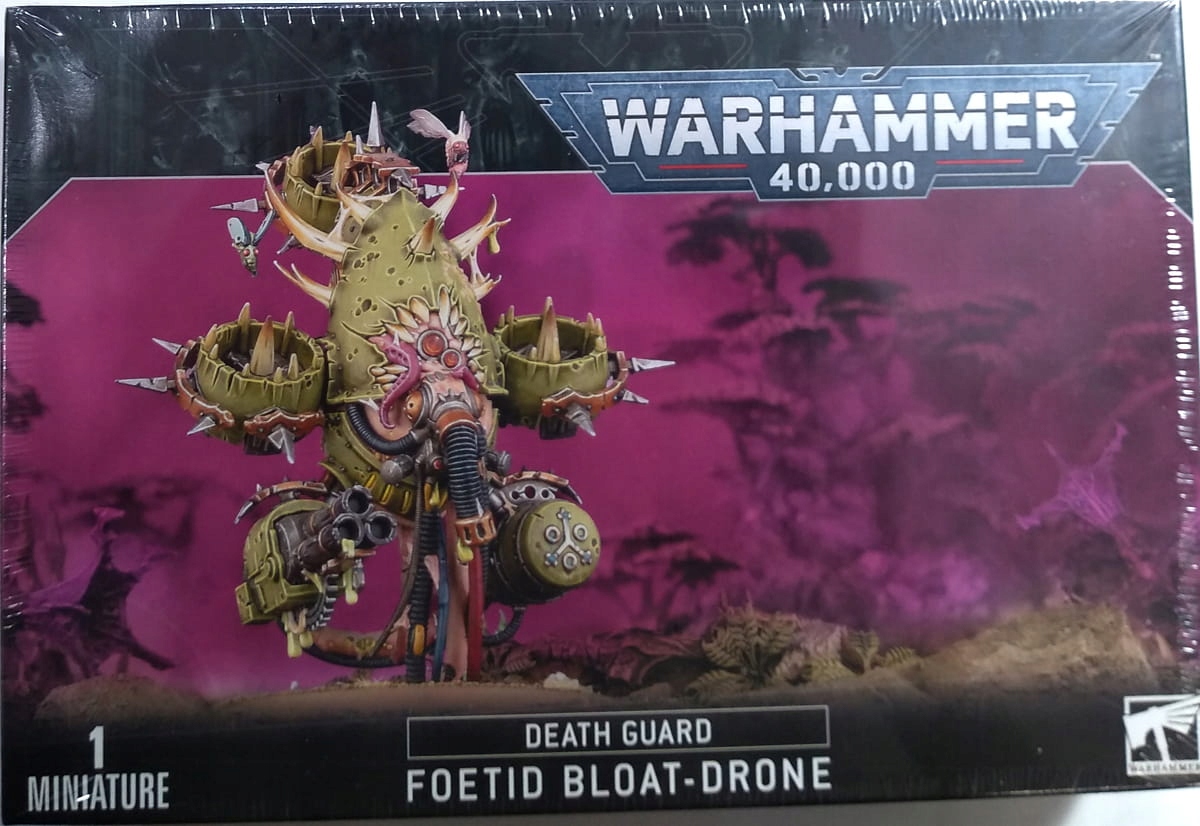 Цей багатокомпонентний пластиковий набір містить компоненти, необхідні для складання дрона Foetid Bloat-drone. Величезне, лякаюче поєднання машини та гнилого м’яса, на передній частині моделі домінує панцир, який можна зібрати як 1 із 3 варіантів: один із символом Нургла, вирізаним на черепах, інший із символом, вирізаним на панцирі, і один із жахливою зубастою пащею, вкритою пустулами, щупальцями та шлангами, що звисають зсередини. Він озброєний 2 чумними плювачами та чумним зондом; Який би панцир ви не вибрали, чумних плювачів можна замінити або важким ураганом, або косаркою м’яса (що виглядає настільки жахливо, як це не звучить…) Задня частина моделі – це буйство жахливих деталей, з непристойно розтягнутою шкірою, що розкидається металеві конструкції, які ледь утримують його