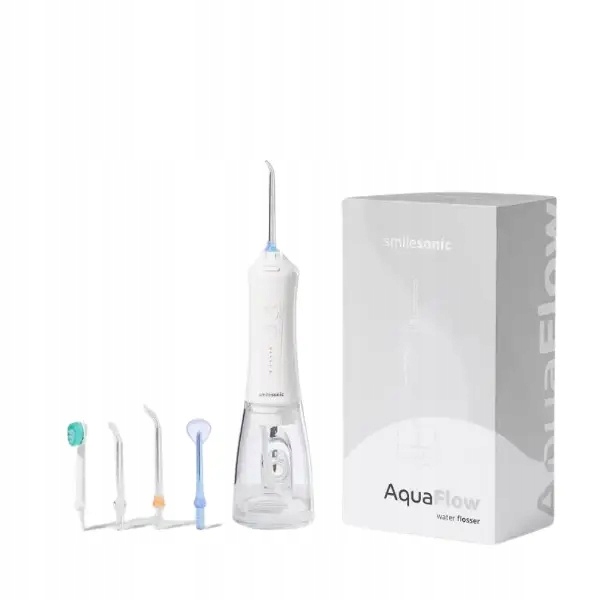 бездротовий іригатор Smilesonic Aquaflow -це пристрій високого класу, створений для догляду за міжзубними просторами в п'яти режимах роботи, в якому тиск виникає в діапазоні 2,75-7,6 бар. Його важлива перевага - великий резервуар для води, який не потребує доповнення під час процесу зрошення. Smilesonic Wireless Irrigator також оснащений ефективним акумулятором, який забезпечує до двох тижнів роботи. Крім того, набір із пристроєм включає п'ять різних спеціалізованих порад та кабель для зарядки USB з адаптером. Продукт доступний у чотирьох кольорах: білий, чорний, рожевий або темно -синій.