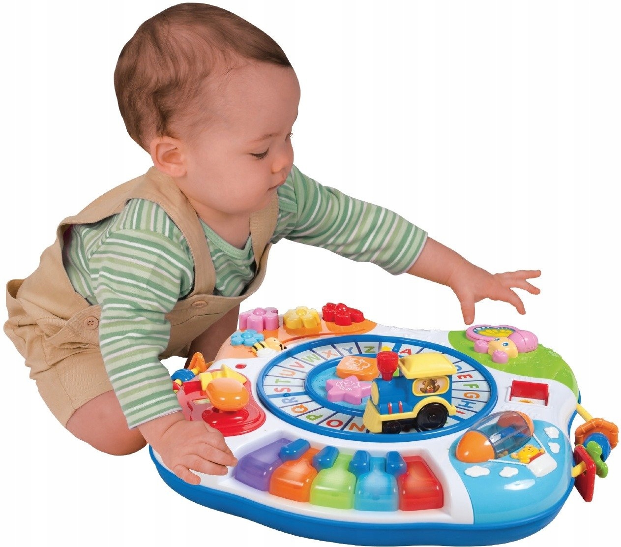 Активний стіл має великий вплив на загальний розвиток дитини, стимулюючи всі органи чуття малюка. Різноманітність красивих мелодій позитивно впливає на розвиток слуху, а величезна кількість атракціонів для захоплення, повороту і дотику сприяють розвитку спритності пальців і рук, а також координації очей і рук. Це ідеальний центр розваг як для хлопчиків, так і для дівчаток.