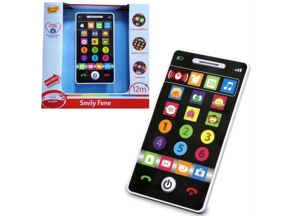 Інтерактивний Smily Fone, який виглядає схожим сучасні смартфони – розвиваюча іграшка. Він має сенсорний екран, дякую чому я ставлюся до іграшки як справжня сучасна людина? телефон.