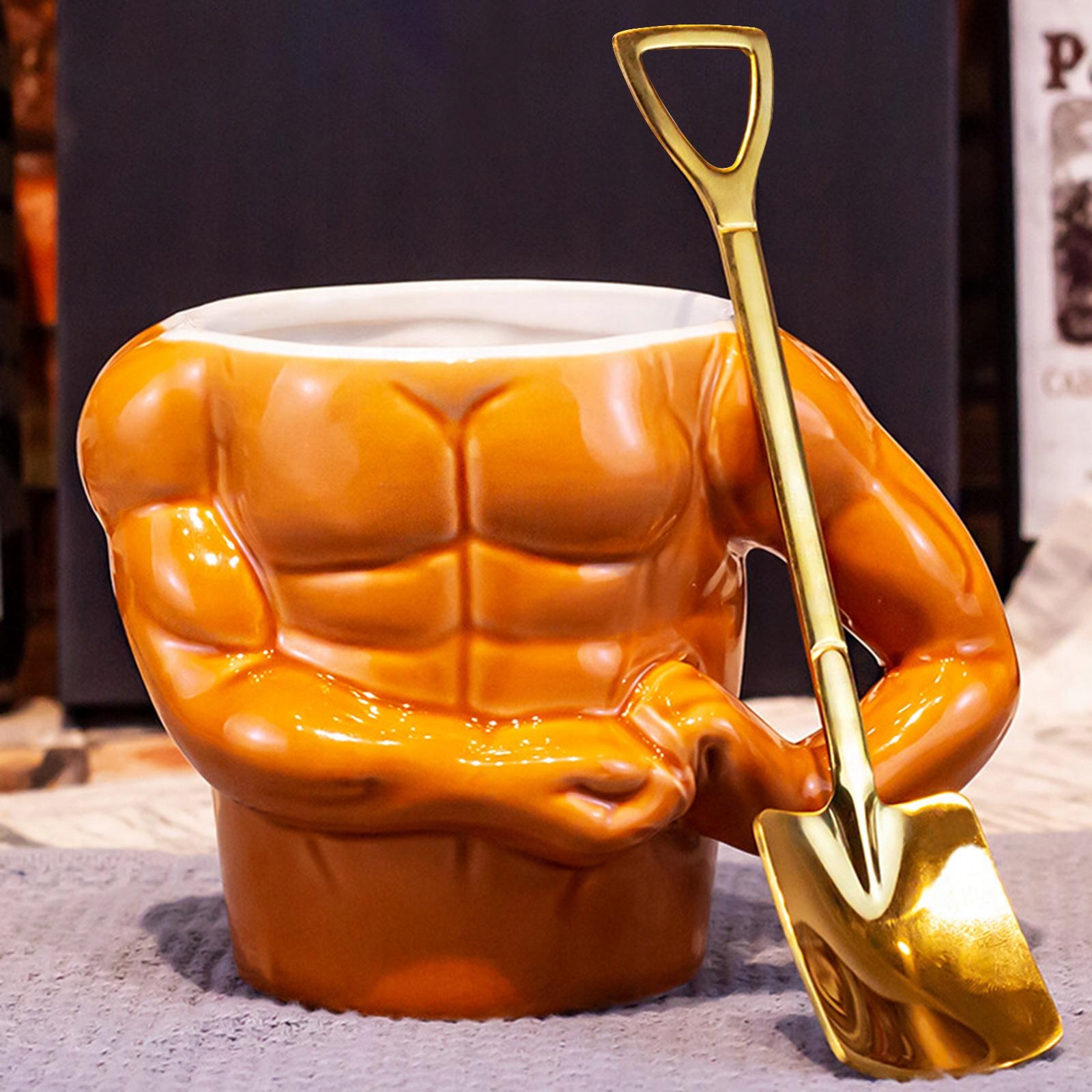 М'язові мускулатури: ця кружка має велику ємність (401-500 мл), вишуканий дизайн, оснащений шпателем у формі лопату (на вибір), завдяки якому ваш стіл буде виглядати унікальним і незабутнім.