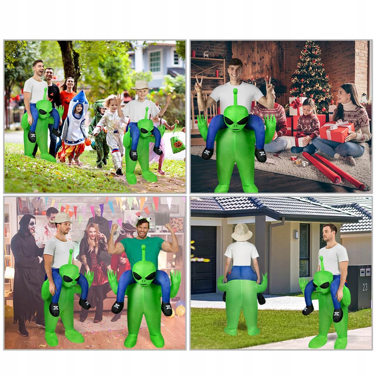 Надувний костюм прибульця підходить для різних випадків, таких як Різдво, Хеллоуїн, Великдень, День подяки, 1 квітня та будь-яких подій, таких як випускні вечори, дні народження, карнавальні вечірки, костюмовані бали та косплей.