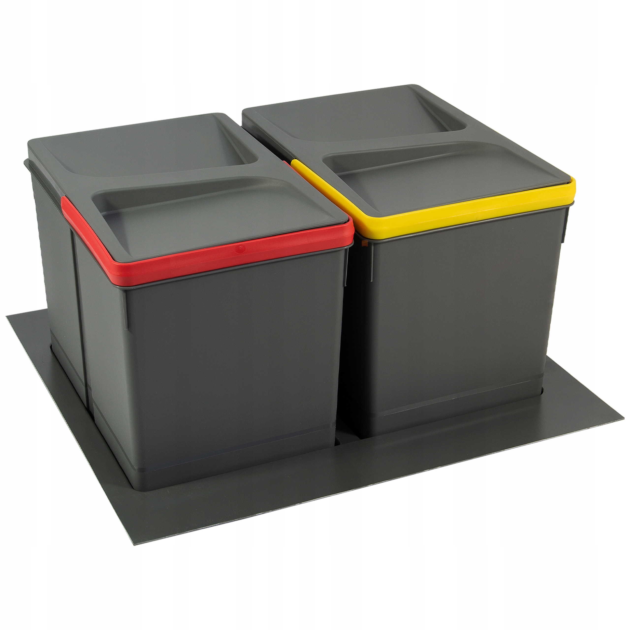 Подвійний урна призначена для висувних ящиків з фронтом 50 см. Продукт включає вкладиш, який можна розрізати, і два контейнери ємністю 15 л. Це чудове рішення, яке дозволяє розділяти відходи простим і приємним способом. Високоякісний продукт іспанського виробника Emuca.