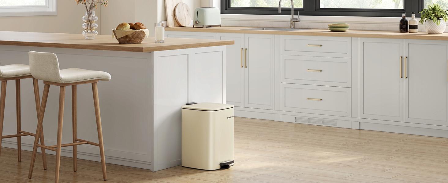 - Songmics кухонний контейнер, сміттєвий контейнер, 20 літрів, сміття з педаль, сталь, з внутрішньою ємністю, м'яким закриттям, функцією утримування, піску Beige LTB592A02