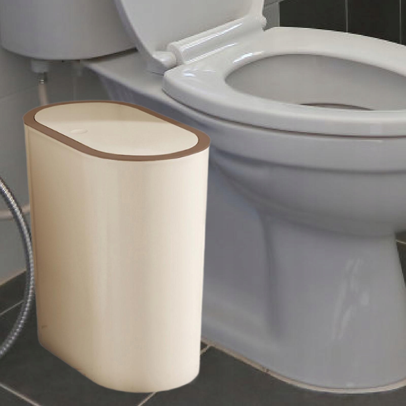 [Назва продукту]: Вузький смітник з великою потужністю з кришкою для дому, туалету та спальні. прасування]: відро для зберігання смітника має кришку типу преси, яке відкривається пресою, що полегшує використання відходів.