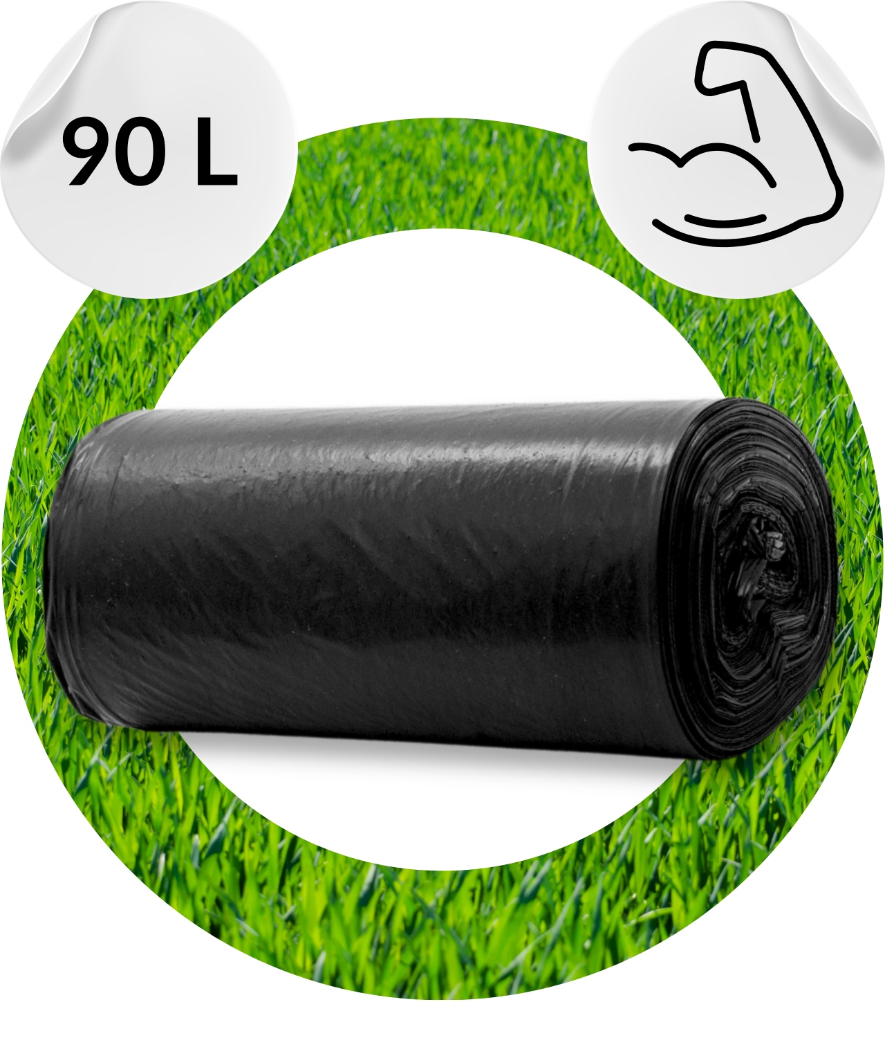Забудьте про громіздкі сміттєві мішки - наші чорні сумки LDPE з потужністю 90 л - це ідеальне рішення для вашого будинку чи офісу!