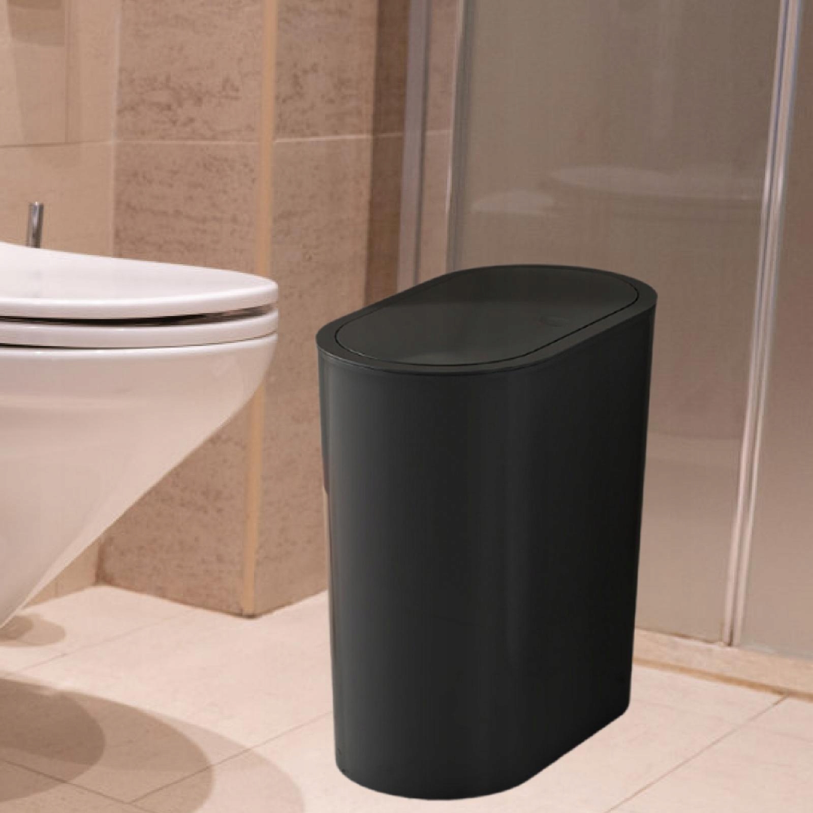 Сміття з кришкою вузькою формою сміттєвий відро для ванної кімнати чорний сміття