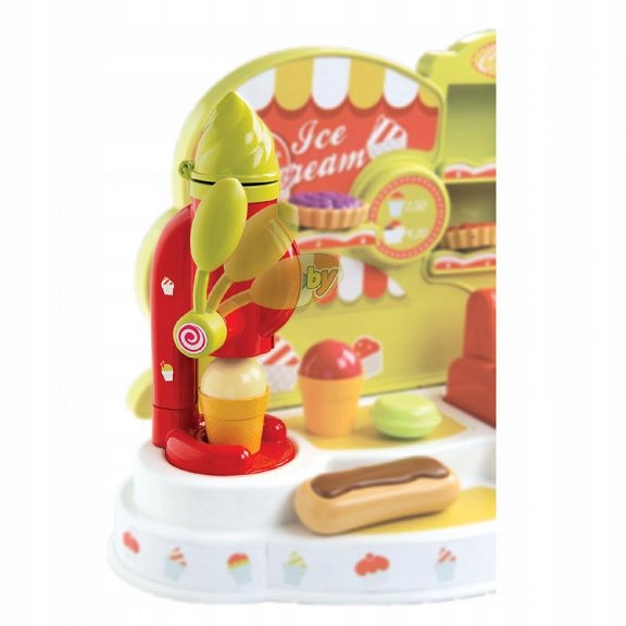 Барвистий набір, прикрашений печивом і морозивом, гарантує чудову розвагу для дітей, які люблять «грати в магазин». Тут вони знайдуть професійно та всебічно обладнану, чарівну кондитерську з касовим апаратом на ключ і автоматом для виробництва морозива, їм потрібно лише потягнути за важіль. У набір також входять такі смаколики, як еклери, морозиво, мафіни та печиво. Додаткові функції включають монети та платіжну картку. Як і інші товари Smoby, кондитерські вироби відрізняються високою якістю та унікальним дизайном!