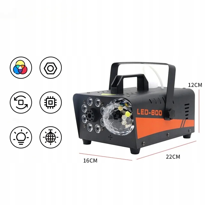 ДИМОВА МАШИНА, ДИСКОТЕЧНА КУЛЯ ДИМОВА МАШИНА, 600 Вт, З 13 КОЛЬОРОВИМИ СВІТЛОВими ЕФЕКТАМИ, БЕЗДРОТОВИМ ПУЛЬТОМ ДИСТАНЦІЙНОГО КЕРУВАННЯ, ПІДХОДИТЬ ДЛЯ ВИКОРИСТАННЯ В ПРИМІЩЕННЯХ, ВЕСІЛЛЯ, ВЕЧІРКИ, ХЕЛОВІНУ ТА СЦЕНИ DJ-SKIE