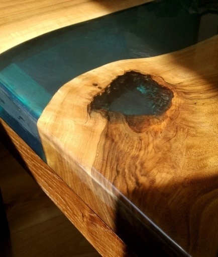 На основі цієї смоли виготовляють виливки з закладеними елементами, доповнюють природні дефекти деревини в поєднанні з перламутровими, прозорими пігментами тощо.