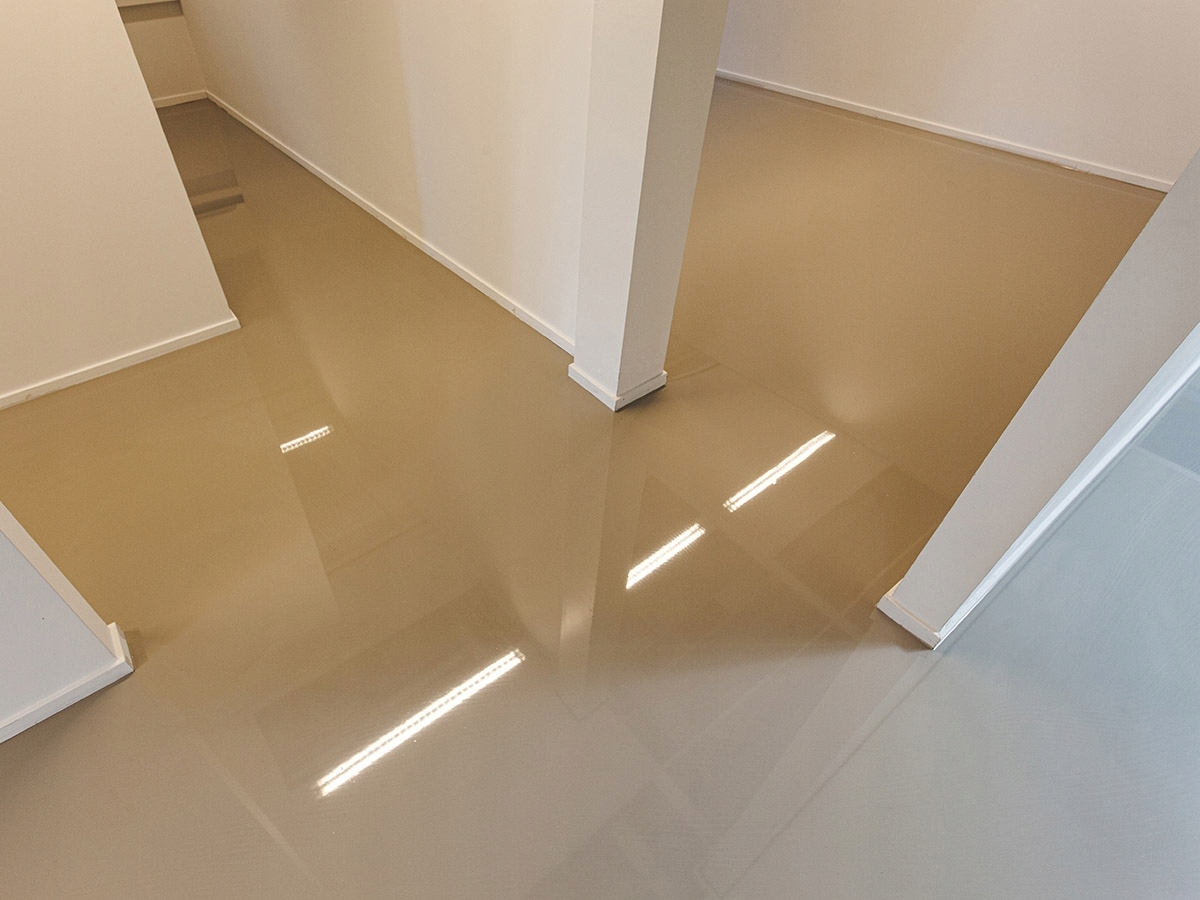 Дво -компонент, барвиста епоксидна смола для виготовлення підлоги та покриттів за допомогою техніки живопису, вилитого, а також покритого кварцовим сукупним або барвистими пелюстками в технології підлоги техніки.