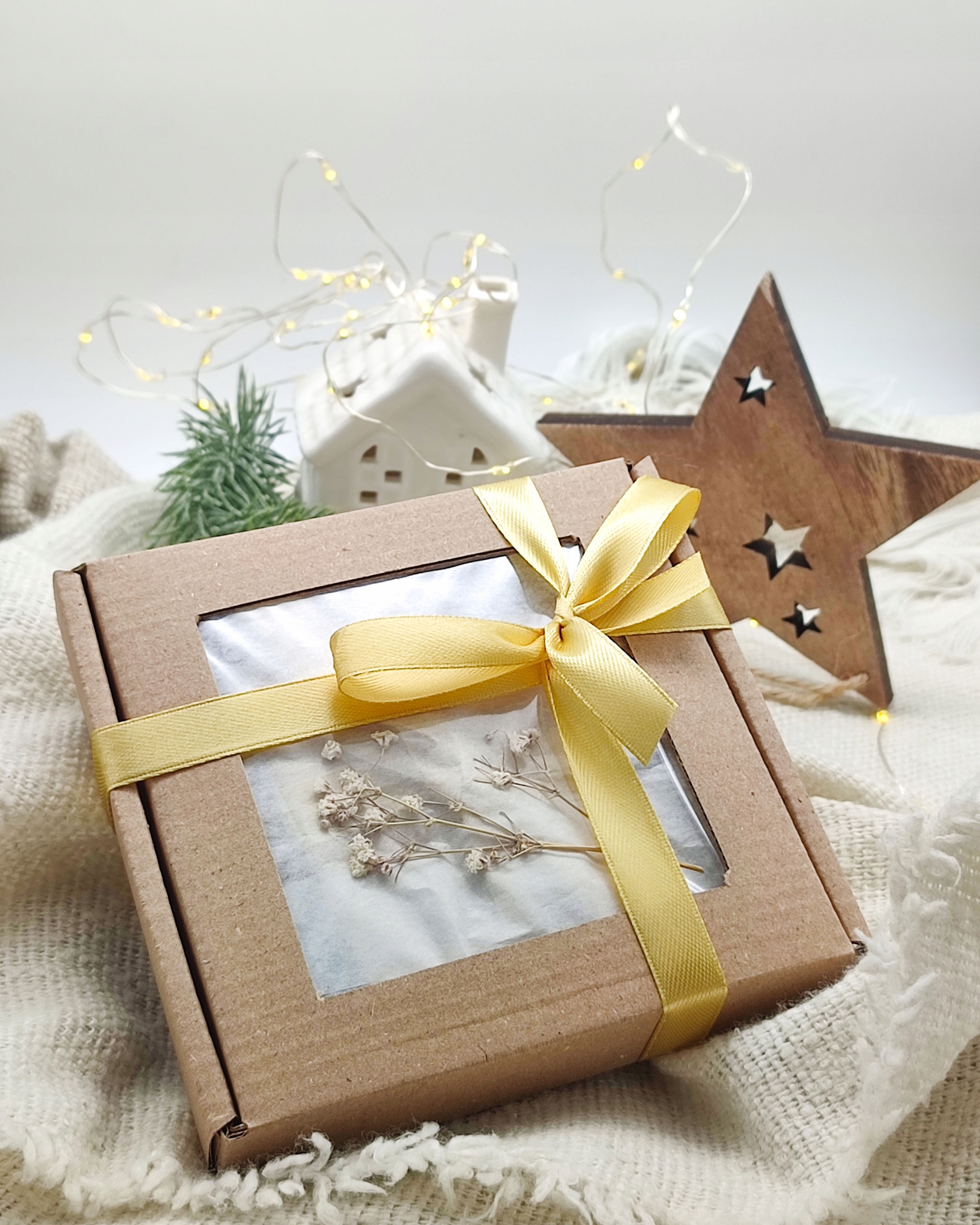 Цигарковий папір, коробка з віконцем, гілочка та стрічка разом створюють щось унікальне.