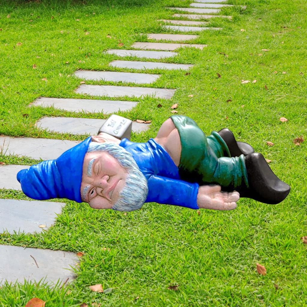 Унікальна статуя садового гнома лежить на газоні, щоб привернути погляди кожного
