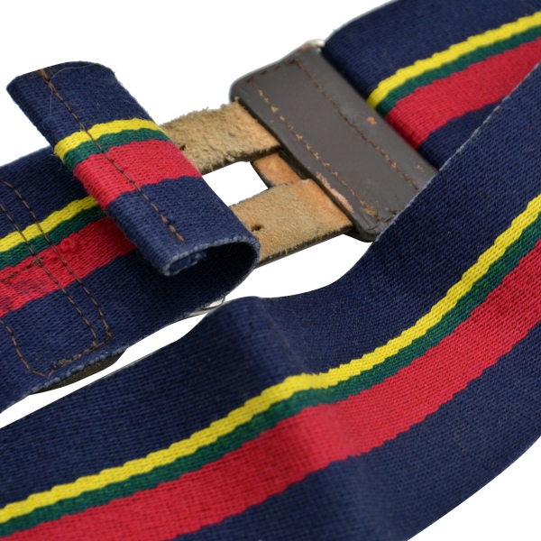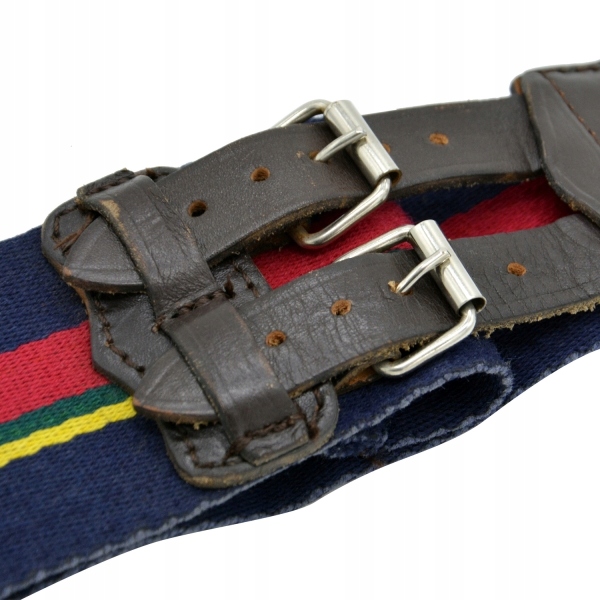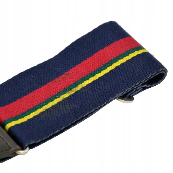 Оригінальний військово-синій ремінь, застібається шкіряними ремінцями. Виготовлений з щільного матеріалу, тому швидко не зіпсується і прослужить нам довгі роки. Ширина пояса 70 мм. Продукт є частиною спорядження Королівської морської піхоти.