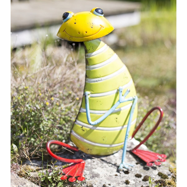 Смугаста жаба - одна з трьох останніх садових прикрас у цій серії. Це більший з двох металевих жаб у цьому стилі, розміром 37 см у висоту.