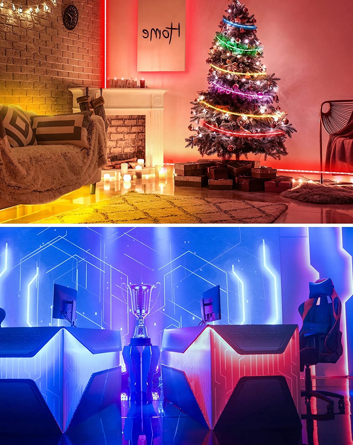 Світлодіодні стрічки дозволяють створити оригінальне освітлення за власним дизайном. Вони пропонують великі можливості, коли справа доходить до організації смужок у вашому домі. Їх часто використовують в профілях, втоплених в стелю або підлогу, таким чином висвітлюючи всі стіни кімнати. Ви також можете встановити їх на сходи або обрамити обрану ділянку кімнати, наприклад, паркетну підлогу.